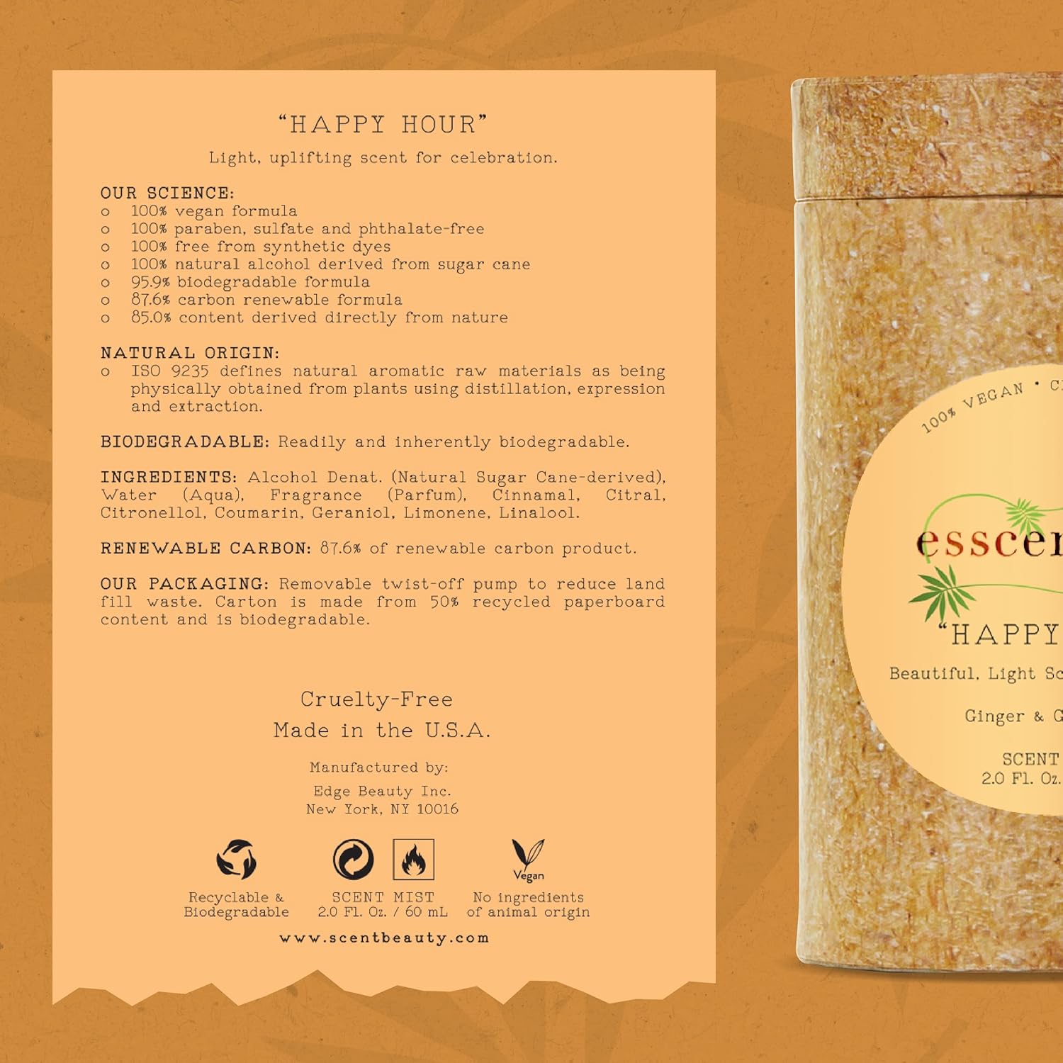 “Happy Hour” is a beautiful, light scent from nature with notes of Ginger & Grapefruit.