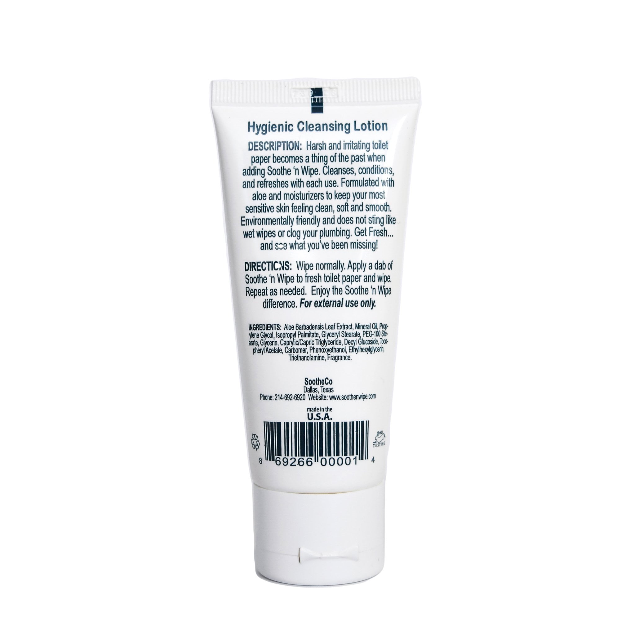 Get the compact 2 oz. travel size for when you need Soothe ‘n Wipe on the go. Fits easily inside most purses, handbags, gym bag or briefcases. Great for the sportsman or anyone on the move! Gives you the convenience and cleanliness. A small dab on even the roughest toiletpaper turns it into a cool and refreshing wipe that gets your bum its cleanest and freshest.
