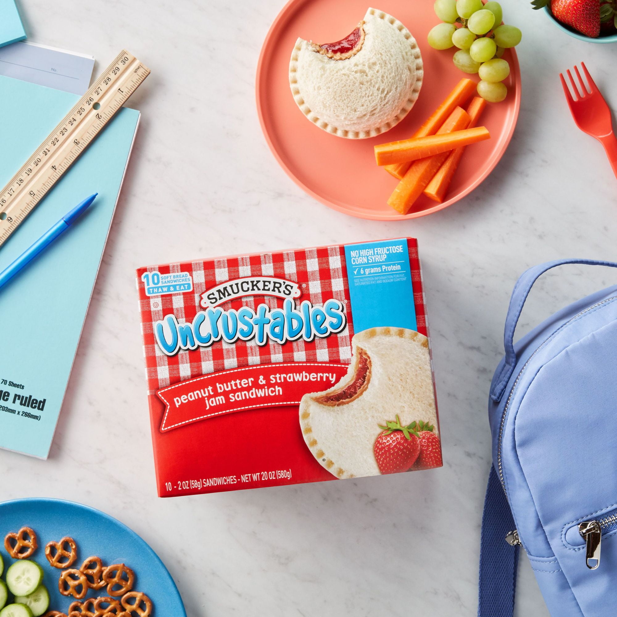 - Snack anywhere, anytime with a grab-and-go Uncrustables® sandwich.