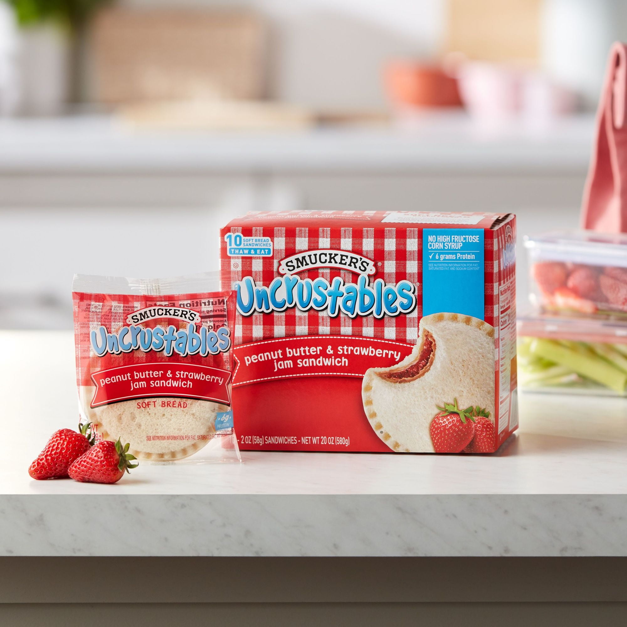 - Smucker’s Uncrustables® individually wrapped sandwiches come in a 10-count pack.