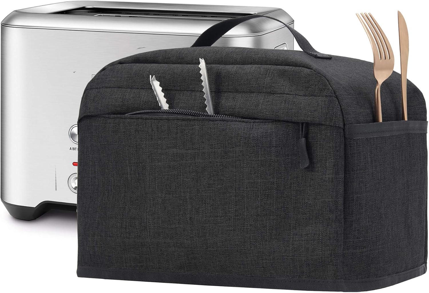 With durable and easy-clean material, sturdy shape, classic colors, convenient top handle, handy zipper and open pockets, our toaster cover ensures that the most hardworking member of your kitchen gear collection can be kept pretty and protected from various kitchen elements.