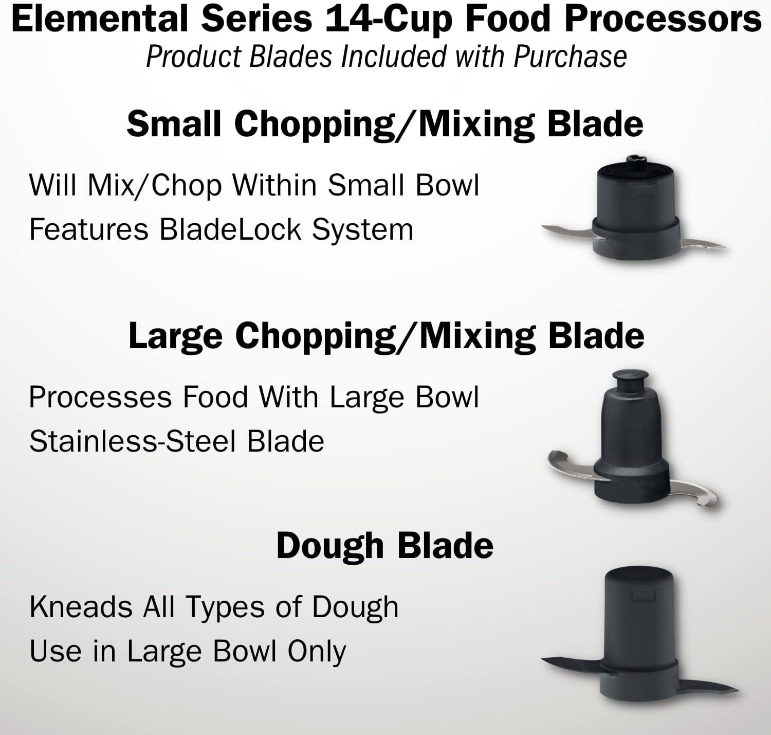 It supplies a 4-1/2-cup small work bowl that nest inside a 14-cup large work bowl–a versatile two-in-one design that can handle multiple-size batches.
