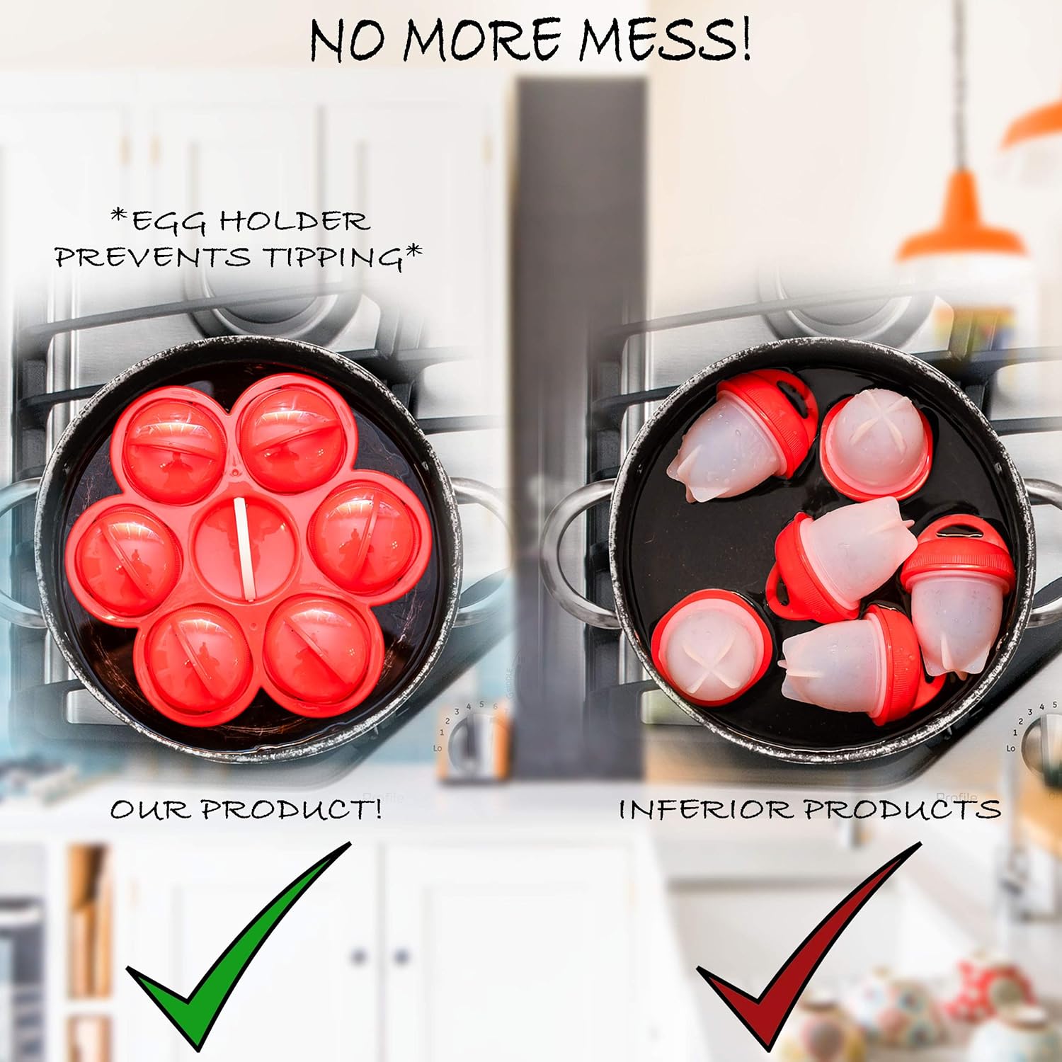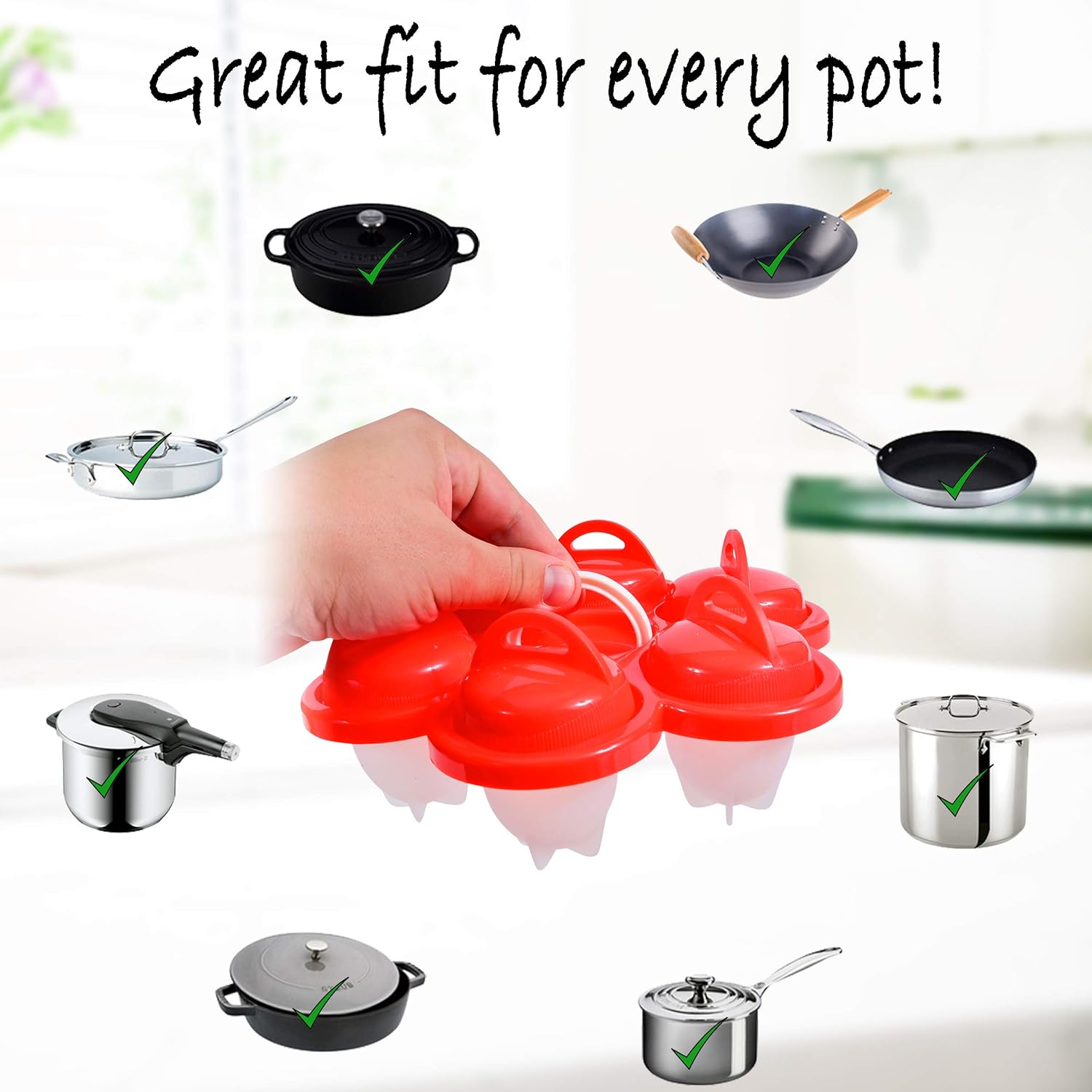 Boil the eggs for 10-15 min in a regular kitchen pot using the egg pods holder for best results (You can check them if they are ready by taking them out and basically touch the bottom of the silicone pod.
