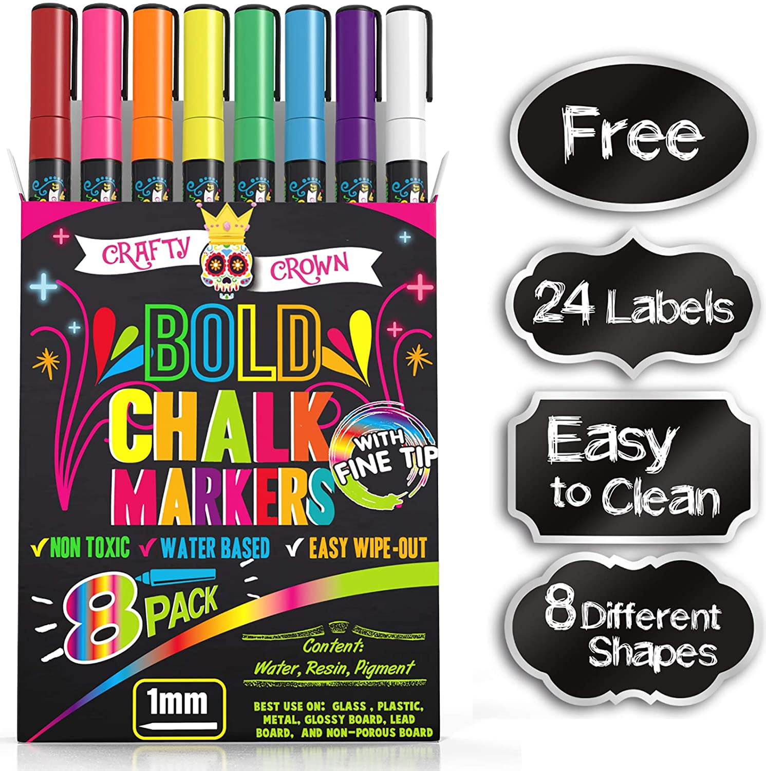Chalky Crown Liquid Chalk Markers – Dry Erase Marker Pens – (8 Pack) (Multicolored, 1 mm)