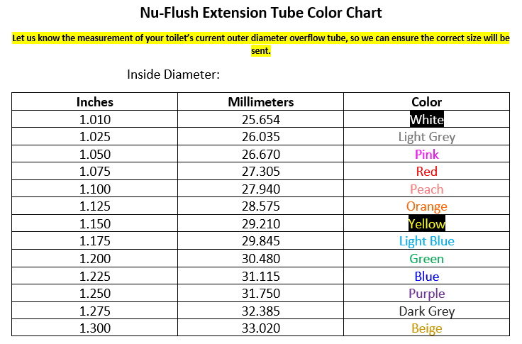 - ** Send us the outer diameter of your toilets current overflow tube in the comment to seller section to ensure the correct size tube(s) are sent **