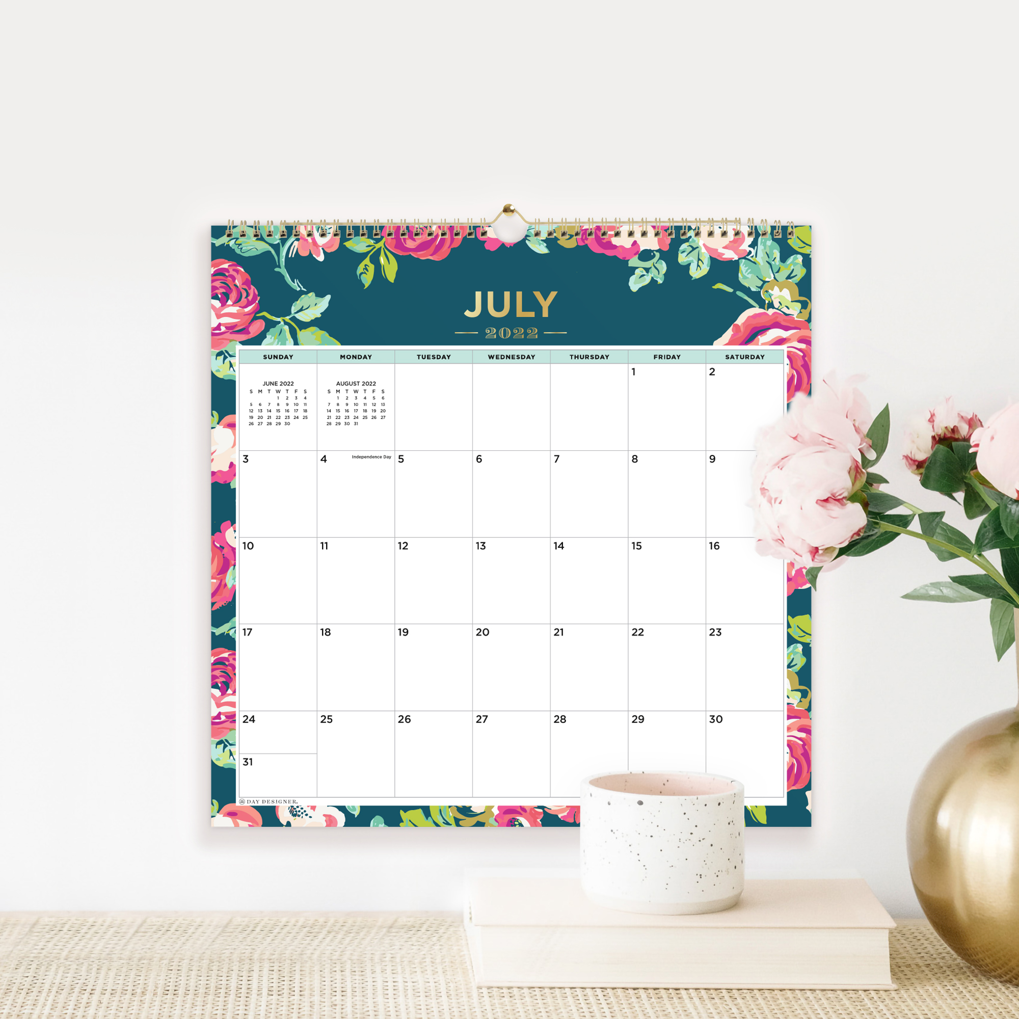 Declutter your desk by using a wall calendar to schedule everyday tasks and appointments. This 2022 – 2023 wall calendar frees up valuable desk space and brightens your office with the floral Reese ocean pattern. Display this 12-month calendar at eye-level to keep everyone on the same page. Perfect for noting day-to-day plans and marking important dates, this flip-style monthly calendar provides spacious, unlined blocks on high quality white paper.