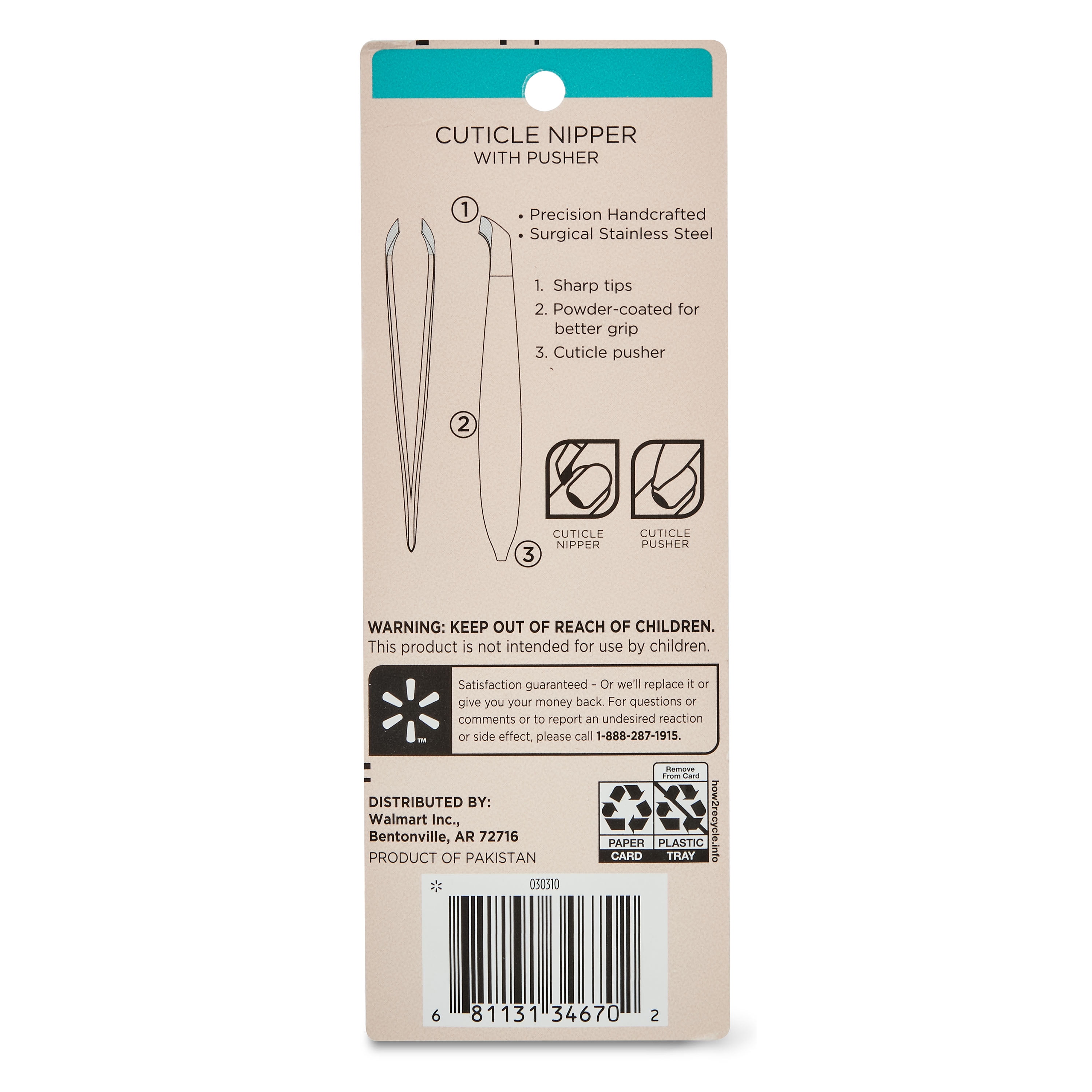 The Equate Cuticle Nipper with Pusher is the perfect tool for getting manicured nails. This nipper features sharp tips that provide clean, even cuts to your cuticles. It also features powder-coated grips that provide maximum comfort and control. Precision handcrafted, the nipper is made with quality, surgical stainless steel for long-lasting performance. It allows you to get the salon quality look without leaving the comforts of your home. It’s conveniently sized to fit in your drawer, bag, wallet or toiletry bag enabling you easy and effective on-the-go nail care. Take care of your nail needs with the Equate Cuticle Nipper with Pusher. Making the right health decisions can be challenging. With a complete range of products and simple solutions, Equate allows you to take care of your family with confidence.