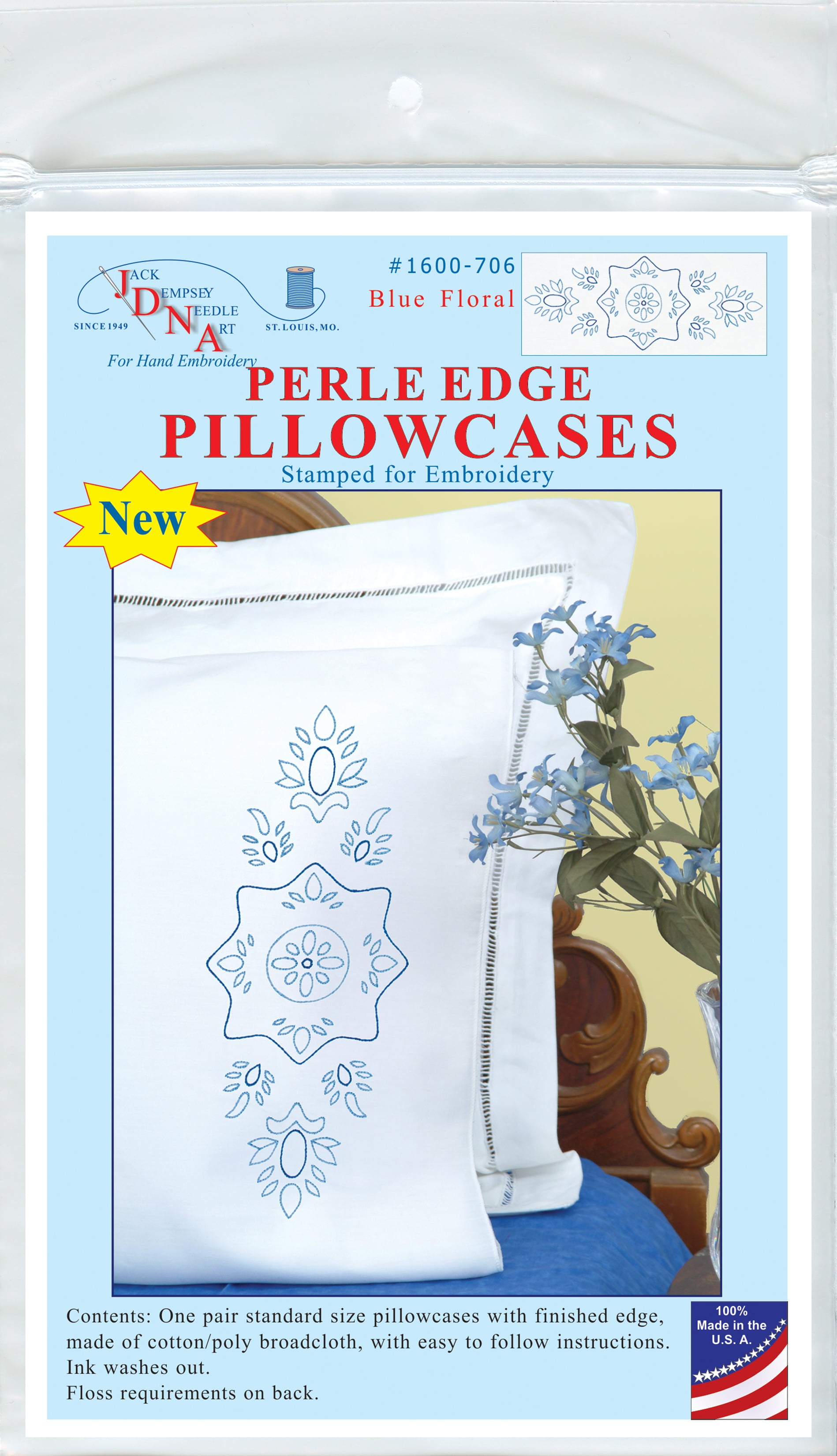 Jack Dempsey Needle Art 1600706 Blue Floral Hand Embroidery, Standard Size, White
