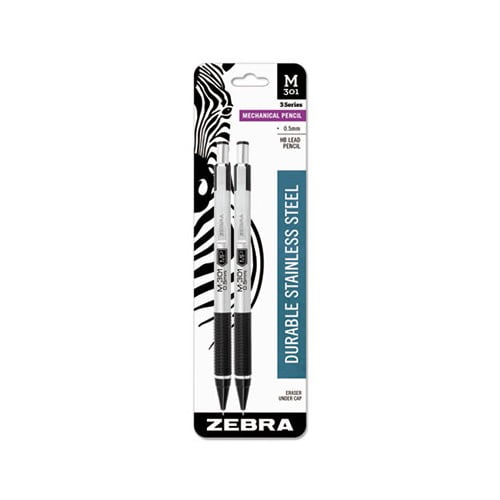 M-301 Mechanical Pencil 0.5 mm, HB 2.5, Black Lead, Steel/Black Accents Barrel, 2/Pack