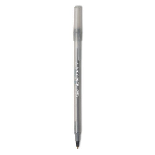 New BIC Round Stic Xtra Precision Stick Ballpoint Pen, 0.8mm, Black Ink, Smoke Barrel, Dozen,Each