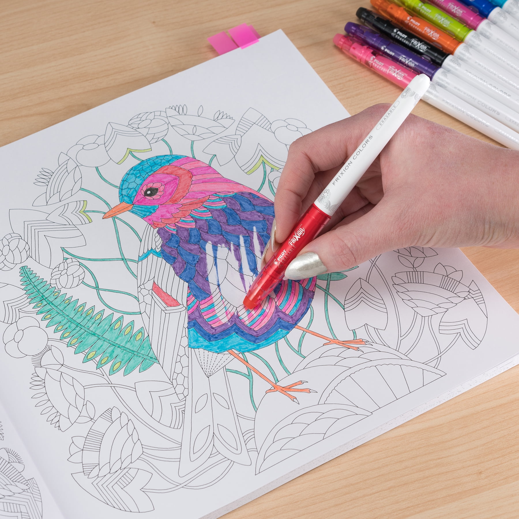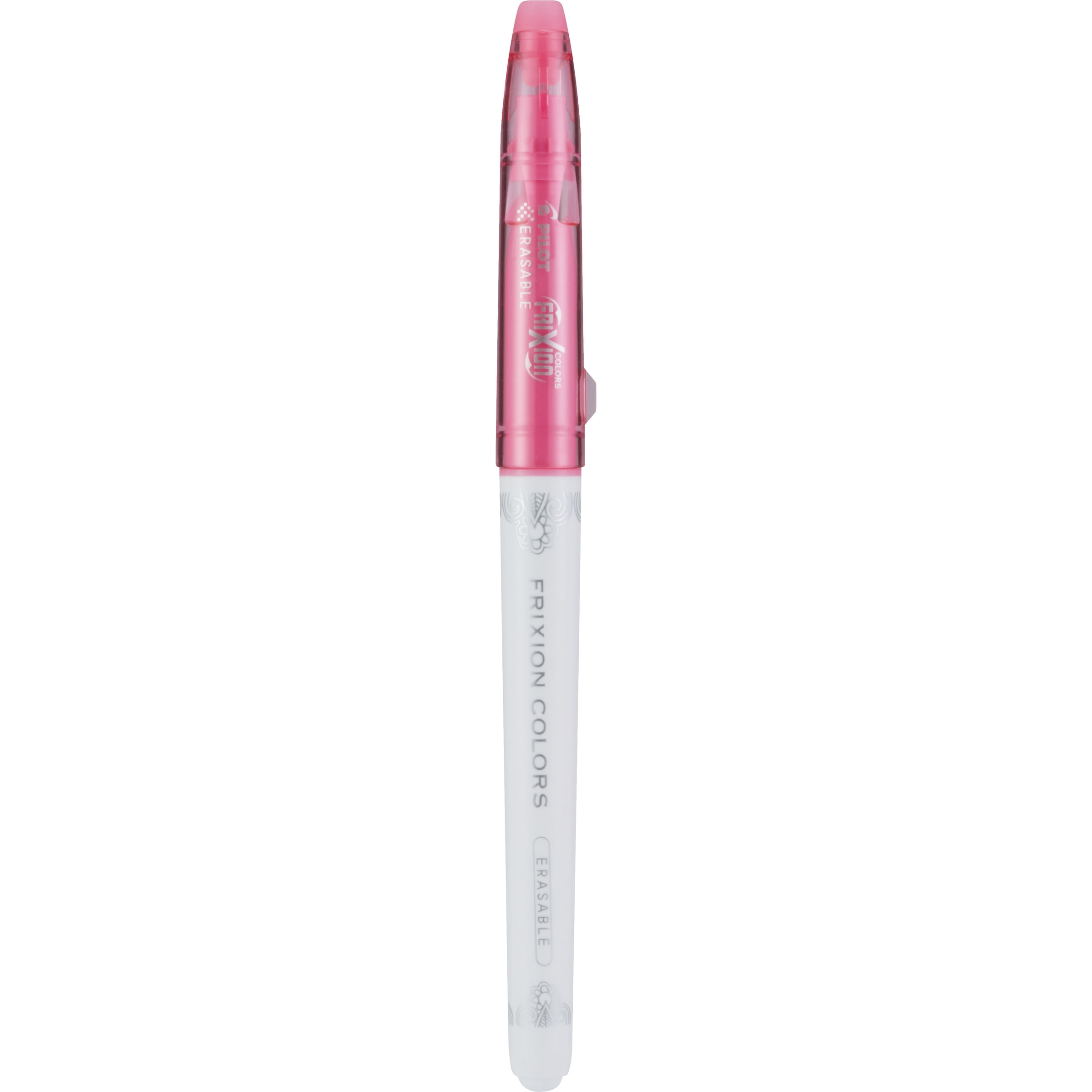 Express yourself creatively and fearlessly with the erasable FriXion Colors Marker Pens by Pilot. You can write smoothly, erase cleanly and revise repeatedly until it’s perfect, with this incredible new marker pen. Thanks to FriXion’s unique thermo-sensitive, erasable ink formula, you can write in 12 stunning colors and erase completely without damaging your documents. The durable tip produces vivid, erasable lines. Add colorful, flawless flair to your writing and drawing with the NEW mistake-free FriXion Colors. Contains black, brown, periwinkle, blue, green, light green, yellow, purple, orange, pink, light pink and red. Erasable pens are not recommended for use on legal or official documents. Do not expose to extreme temperatures (<14°F, >140°F). If pen is exposed to temperature that reaches 140°F, the ink will be colorless when writing. To restore color, cool to at least 14°F in freezer and the ink will again write in color.Erase and rewrite repeatedly without damaging documents. No wear or tear! Assorted thermo-sensitive inks Bold Point Sleek and stylish barrel Eraser is at the top of the pen cap
