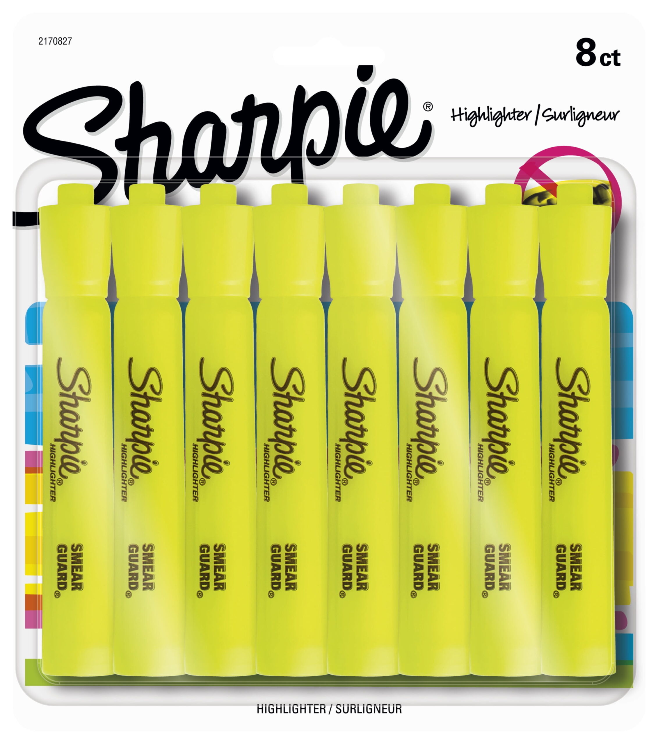 Sharpie Tank Style Highlighters, Chisel Tip, Fluorescent Yellow, 8 Count