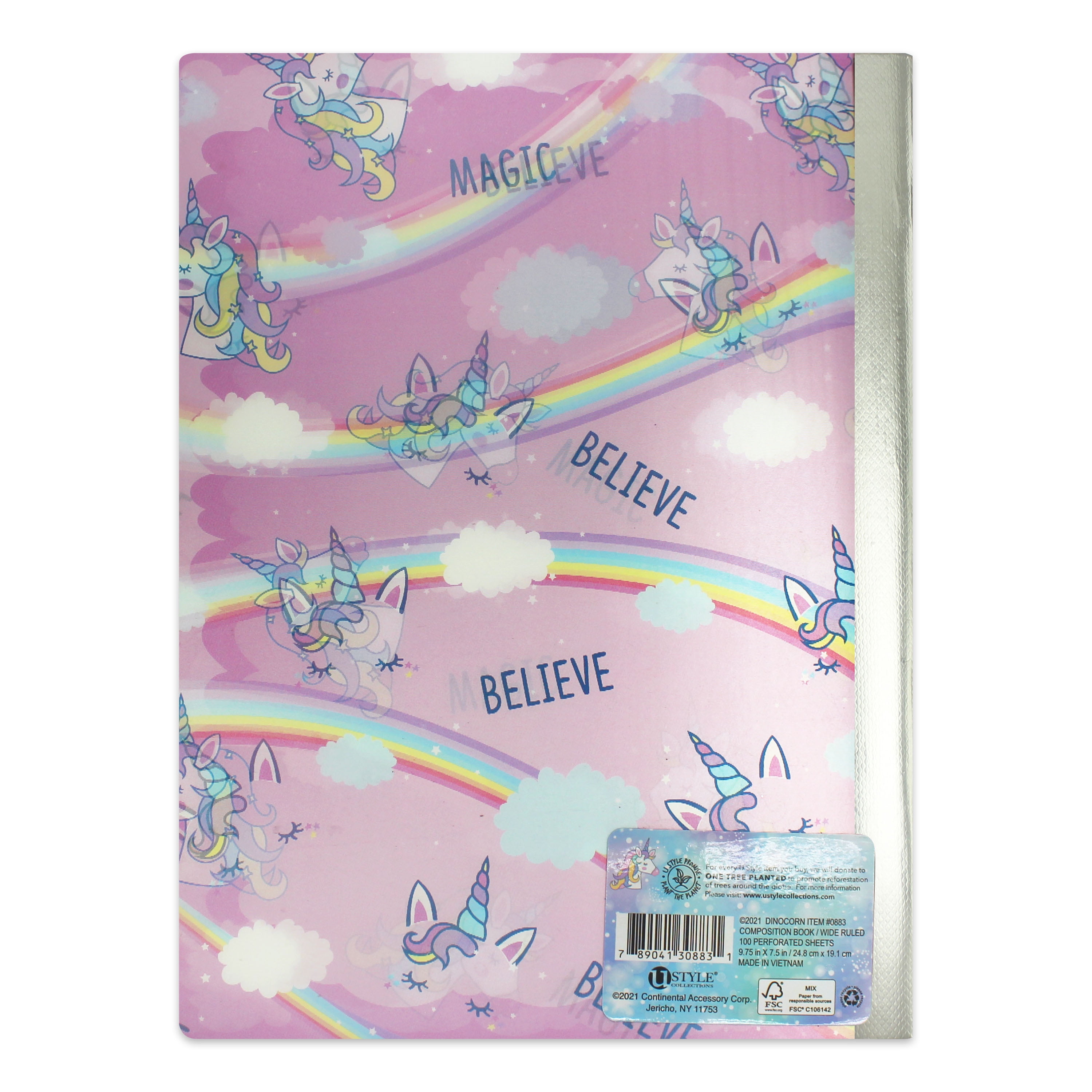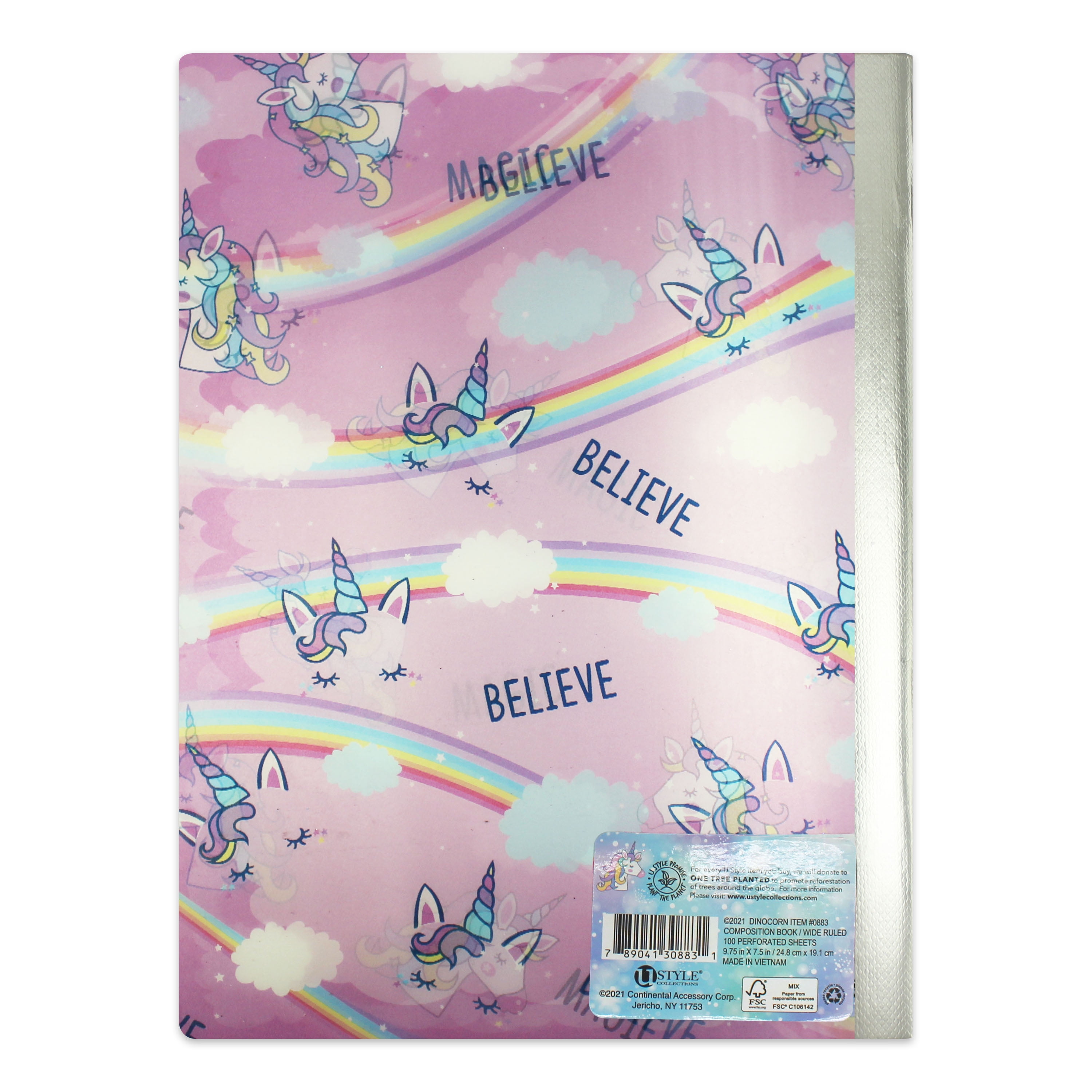 U Style Dinocorn Lenticular Composition Book, 100 Sheets, Wide Rule, 883