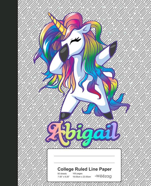 Weezag College Ruled Line Paper Notebook: College Ruled Line Paper: ABIGAIL Unicorn Rainbow Notebook (Paperback)