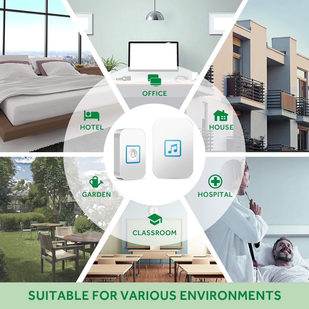 TeckNet WA658 Wireless Doorbell: The WA658 Plug-in Wireless Door Chime and Push Button makes it easy to replace your home’s generic doorbell ring with a chime tune that better fits your individual style. Plugs into Any Standard Wall Outlet: Easy to install and operate, it plugs into any standard wall outlet. Use it for front, side, or back doors to gain security and peace of mind. 4 Volume Levels You’ll be happy to know that you have the option of turning the chime down or up–a great option for different environment. 820 Feet Operating Range: Thanks to its industry-leading 820-feet working range, you’ll be sure never to miss a visitor’s arrival no matter where you are. Choice of 32 Chimes: This unit lets you choose the best way to be notified when someone is at your door. In addition to your choice of 32 selectable chime tunes Flashing Light Indicator: The flashing light indicator that gives you a visual form of notification(an excellent feature for the hearing impaired). Dependable Operating Range: The WA658 has 64,000 available codes to prevent interference from other users. TeckNet 18 Months Warranty: At TeckNet, we believe in our products. That’s why we back them all with an 18-month warranty and provide friendly, easy-to-reach supportWireless Doorbell, TeckNet Waterproof Wireless Door Bell Chime Kit with LED Light 1 Receiver and 1 Push Button Operating at 1300 Foot Range with 38 Chimes