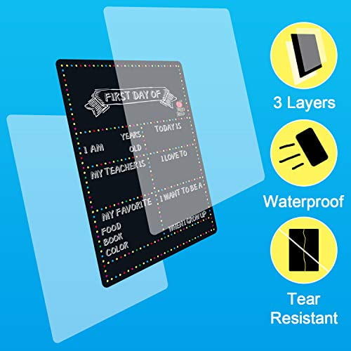 Yoklili First and Last Day School Chalkboard Sign is Great back to school gift for kids, students, girls and boys from parents. Customized with your children?s information and then take photos to create photo memories of the first day of each school year from Pre-K preschool kindergarten 1st-12th grades.FEATURE Material: Thick Cardstock Size: 8.5 x 12 inches PACKAGE 1 x Double Sided First and Last Day School Board NOTE Please use liquid chalk marker (not included) to write. Liquid chalk markers have brighter color on our board. Liquid chalk marker can be wet erased well on our board, can?t be dry erased.Yoklili First and Last Day of School Chalkboard Sign, Perfect Back to School 1st Day Photo Prop Sign for Kids Reusable Easy Clean 8.5 x 12 Inch