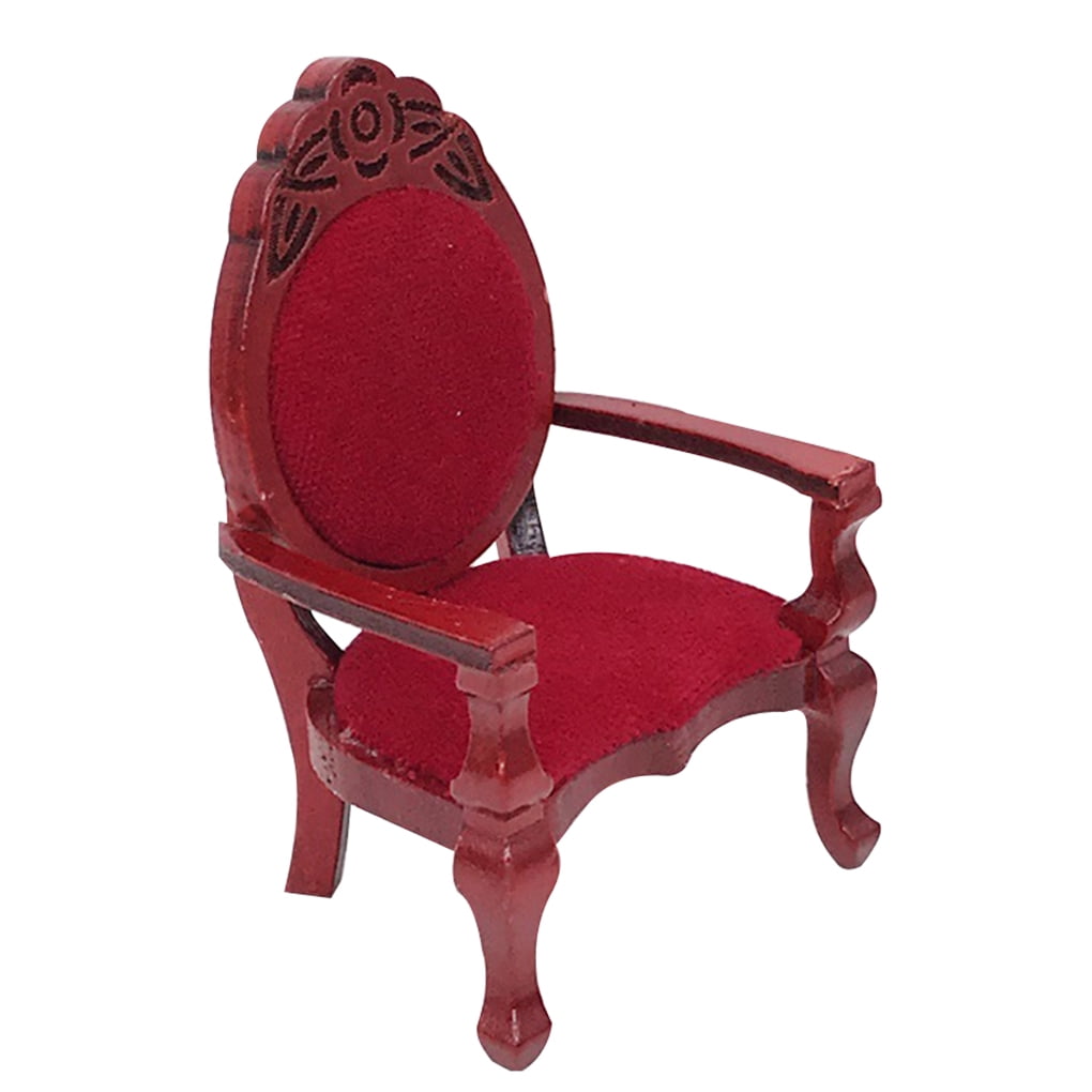 1:12 Dollhouse Red Carving Retro Chair High Back Wooden Miniature Furniture Dollhouse Accessories