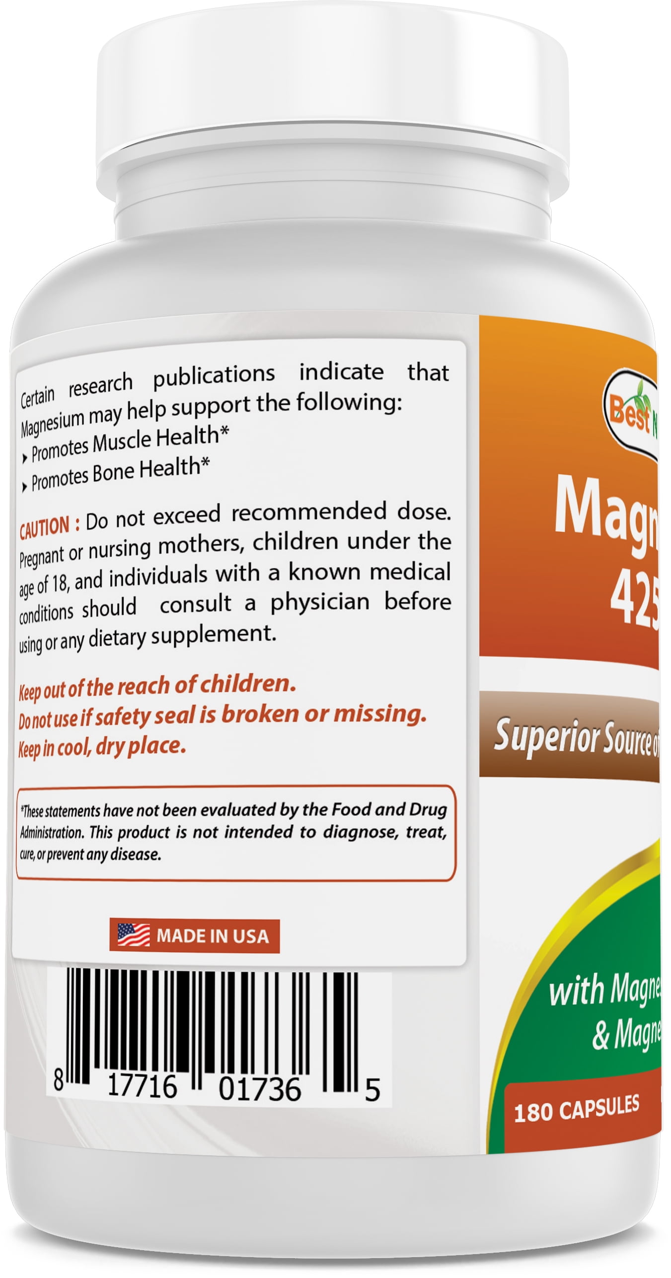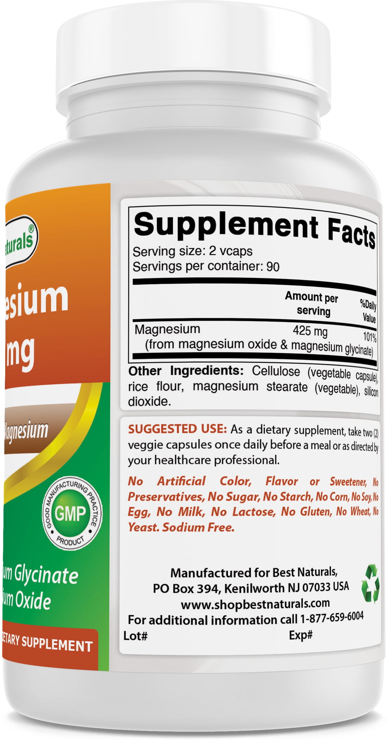Best Naturals Magnesium 425 mg is made of magnesium oxide & magnesium glycinate. It is also one of the best-absorbed forms of magnesium.*