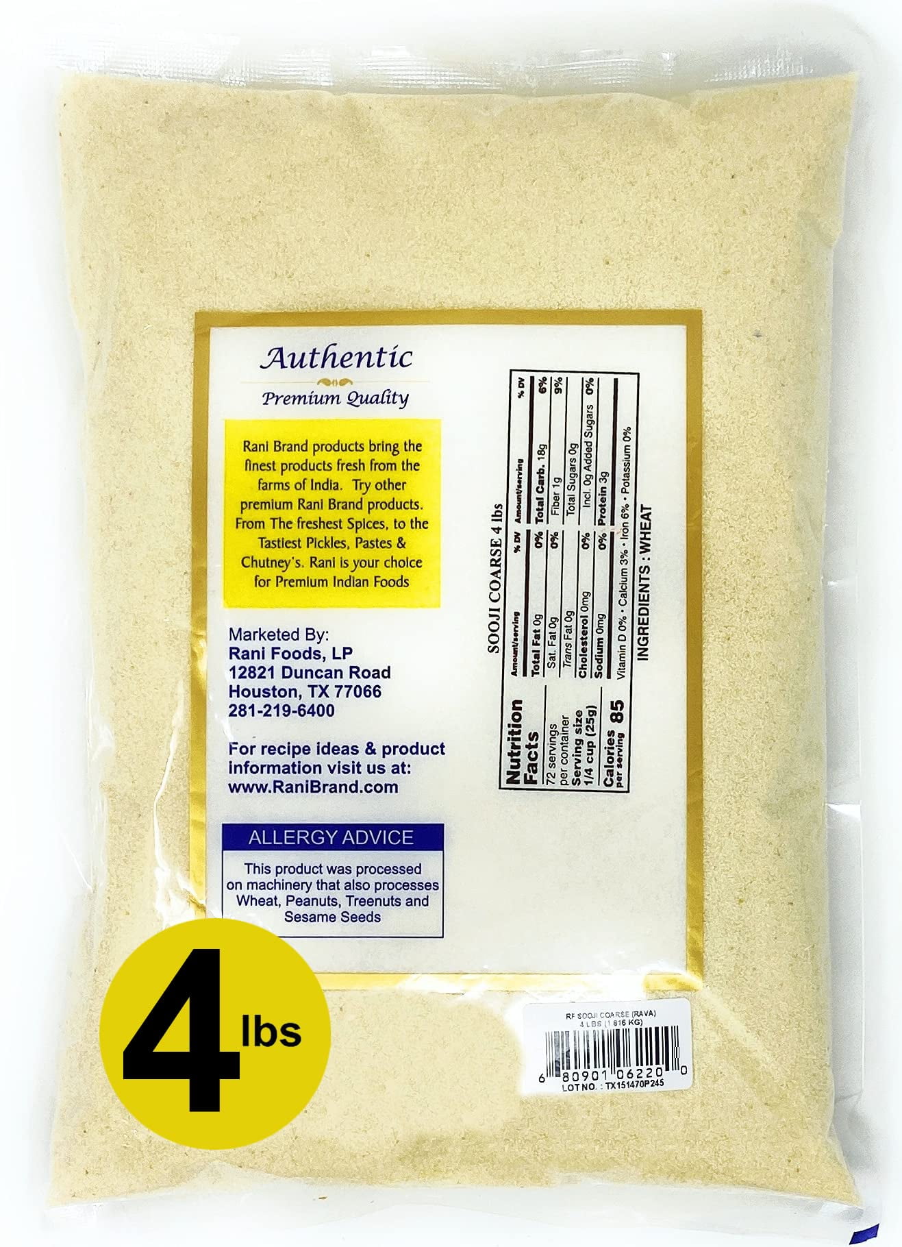 Rani Sooji (Farina, Suji, Rava, Rawa) Coarse Grind Flouris made from the creamy inside of the whole wheat kernel (called purified wheat). When cooked, it has a smooth, slightly grainy texture that is good for both savory & sweet dishes. Our quality product is from India, free from excess moisture and fresh product guaranteed.