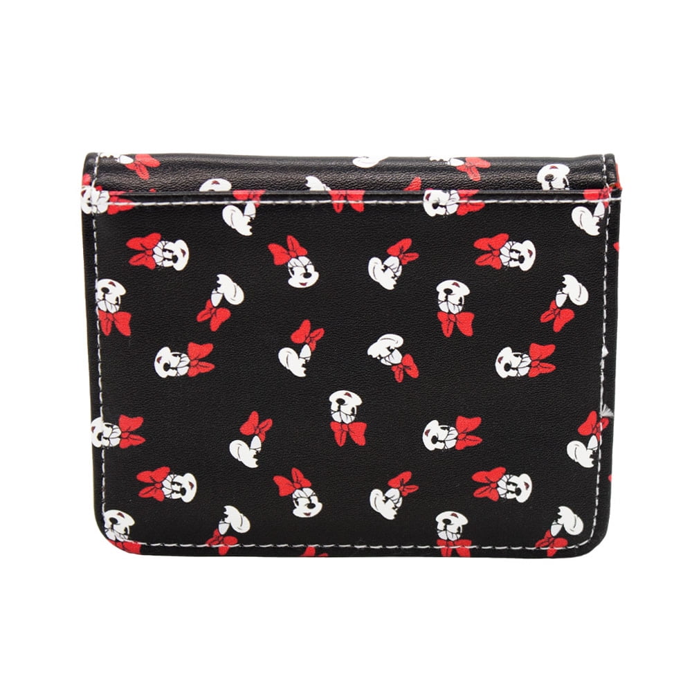Buckle-Down Women’s Disney Wallet, ID Fold Over Snap, Minnie Mouse Script with Expressions Scattered, Black, Vegan Leather