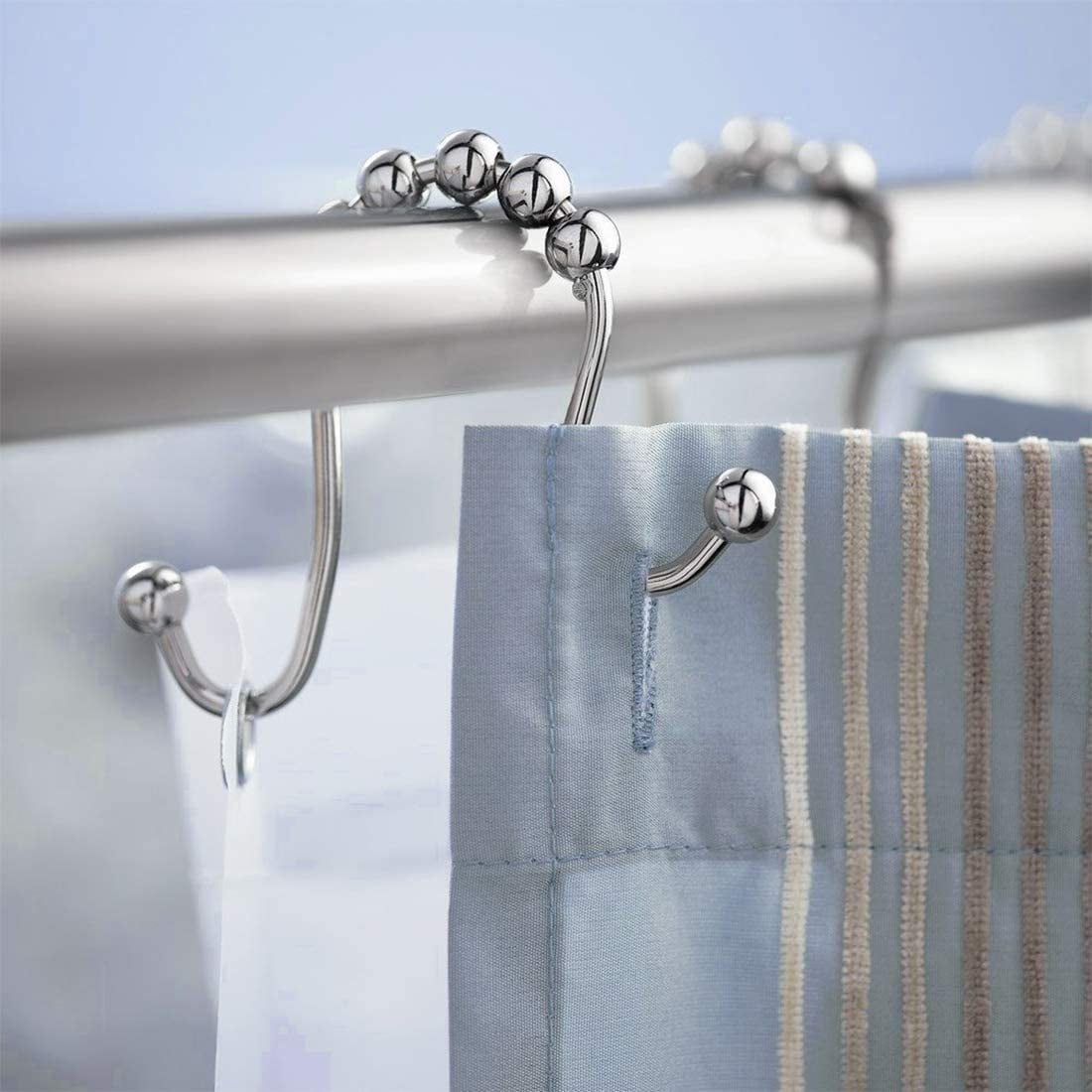 AEDILYS Durable Shower Curtain Hooks Rings,Stainless Steel Double Sliding Shower Hooks, for Bathroom Shower Rods Curtains, Set of 12 Shower Curtain Hooks,Silver