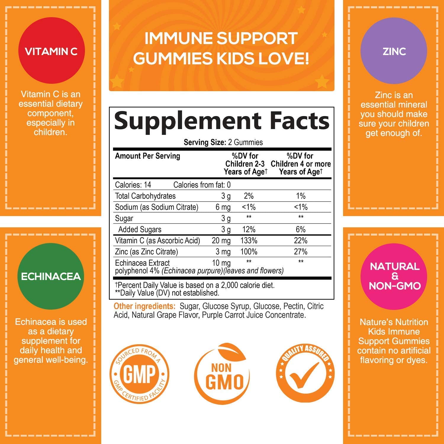 Nature’s Nutrition Kids Immune Support Gummies with Vitamin C, Echinacea and Zinc, 120 Ct