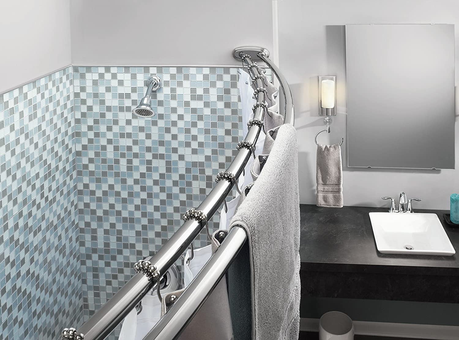 AEDILYS Durable Shower Curtain Hooks Rings,Stainless Steel Double Sliding Shower Hooks, for Bathroom Shower Rods Curtains, Set of 12 Shower Curtain Hooks,Silver