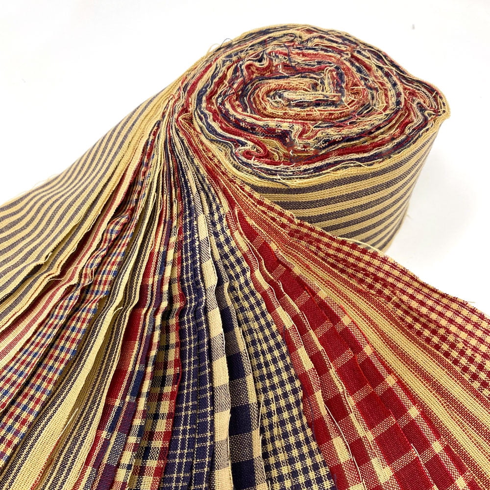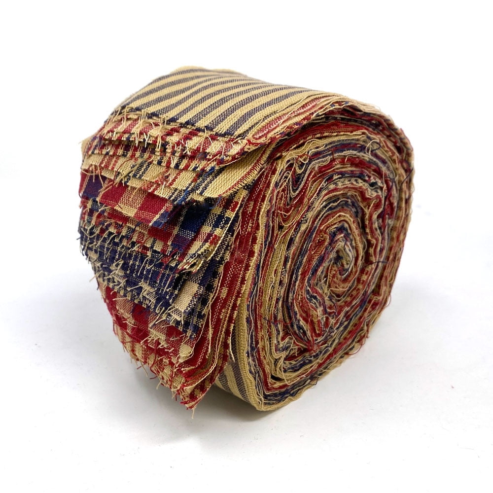 These convenient American Heritage "jelly roll" homespun fabric strips can be a great starting point for many different homespun crafts. As always, the homespun fabric is the same on both sides which makes it so easy to work with. The edges are straight cut and ready for clipping and ragging. Sold as a set of 26 strips size 2.5" x 44" as shown in the pictures. 100% Homespun Cotton by JCS.