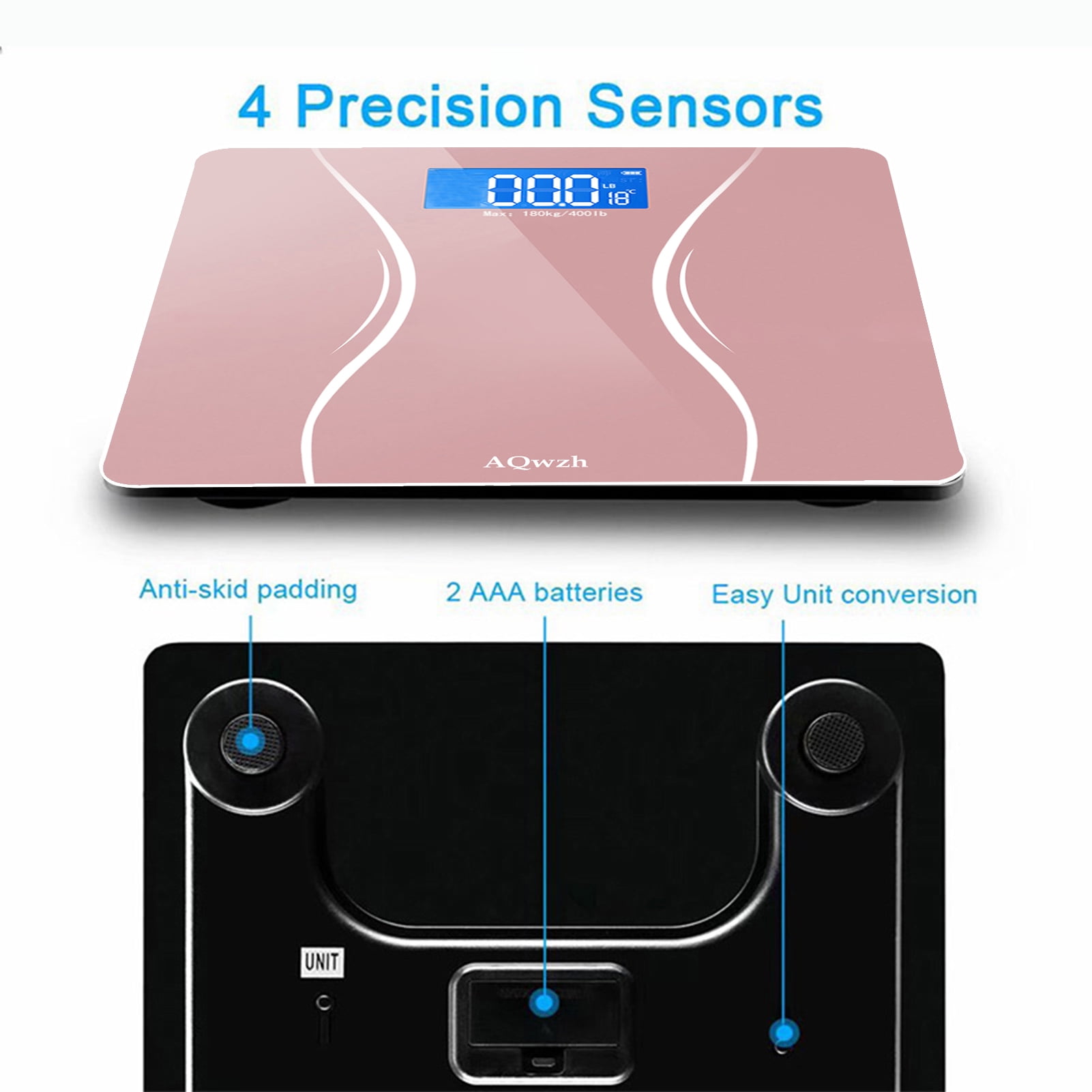 - 4 precision weight sensors provide accurate measurements down to a 0.1 lb (50g) graduation with 396 lbs/180 kg Max. weight capacity