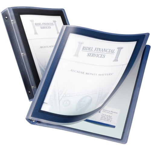 With this stylish Flexi-View(R) Binder you can present reports in flexible, durable plastic that keeps your pages looking neat and professional. The 1" round rings hold up to 175 sheets, and the nonstick poly material prevents ink and toner lift. A colorful, preprinted damask border on the front cover frames a clear window that shows off your customized title page. You can personalize the inside front cover as well. Just use the free designs and templates at avery.com/print to create your perfect binder.