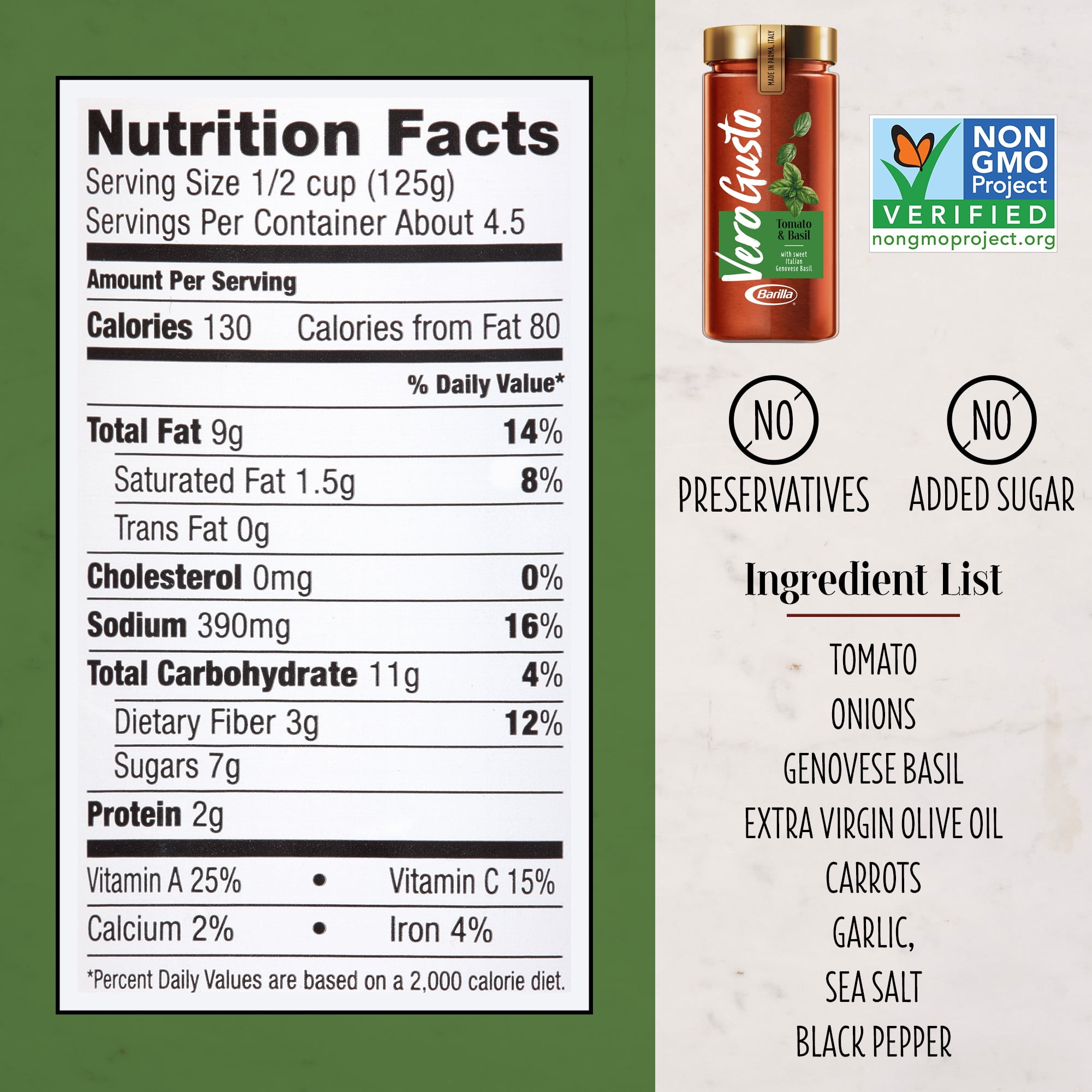 - NON-GMO PASTA SAUCES WITH NO ARTIFICIAL INGREDIENTS: Our pasta sauces are Non-GMO Project Verified and contain no artificial colors, flavors, or preservatives