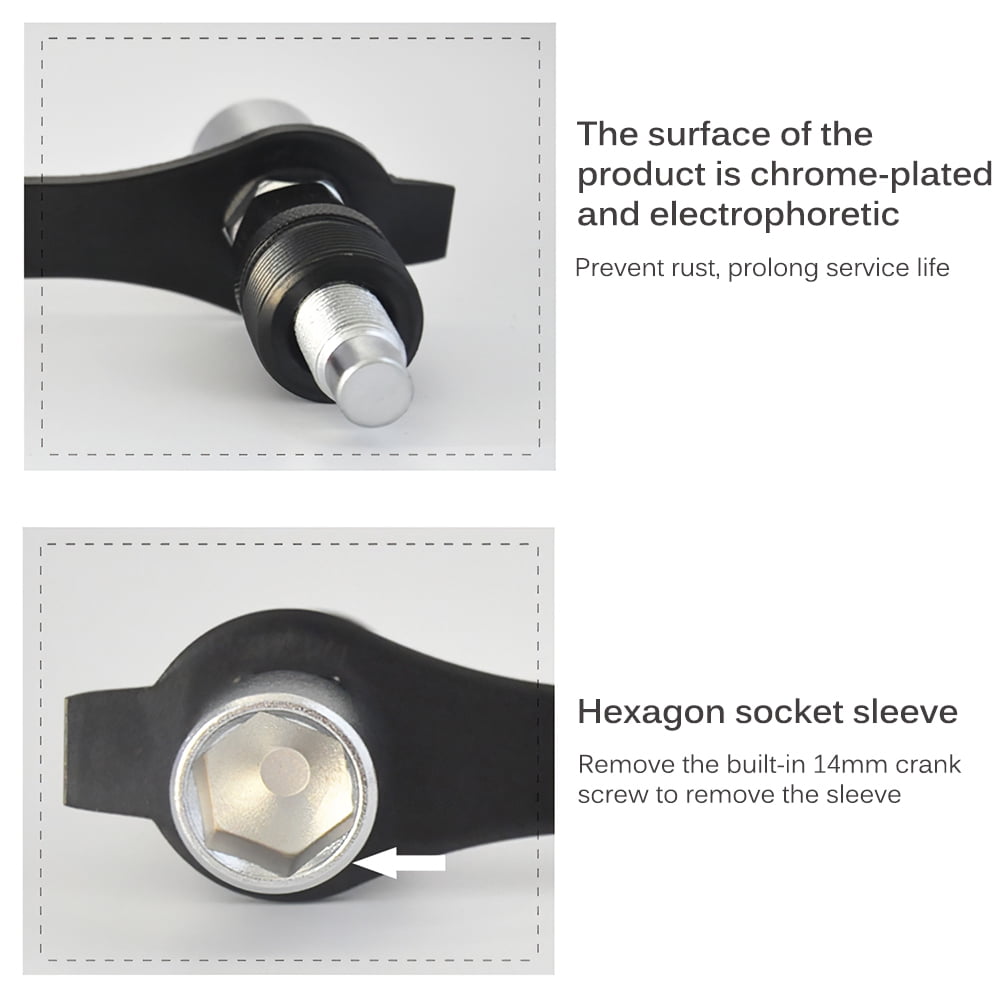 Built in 14mm hexagon socket, for removing crank screw, lengthened handle makes it easy to use for work.
