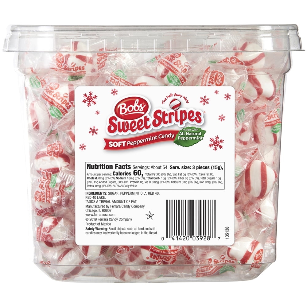 The melt away mints: These refreshing mints in green & white twists are perfect for sharing. These smooth mints will reinvigorate your taste buds with their delicious taste.Classic mint candy: Bob’s sweet stripes are a smoother, softer way to enjoy a mint. Sweet Stripes are individually packaged, making them a perfect treat to share with friends, family & coworkers; They’re great for parties, your candy dish & anytime snackingA minty candy favorite for everyone: As a candy favorite for generations, Bob’s produces a delicious assortment of candy canes, peppermint sticks & soft mints in wintergreen & peppermint flavors