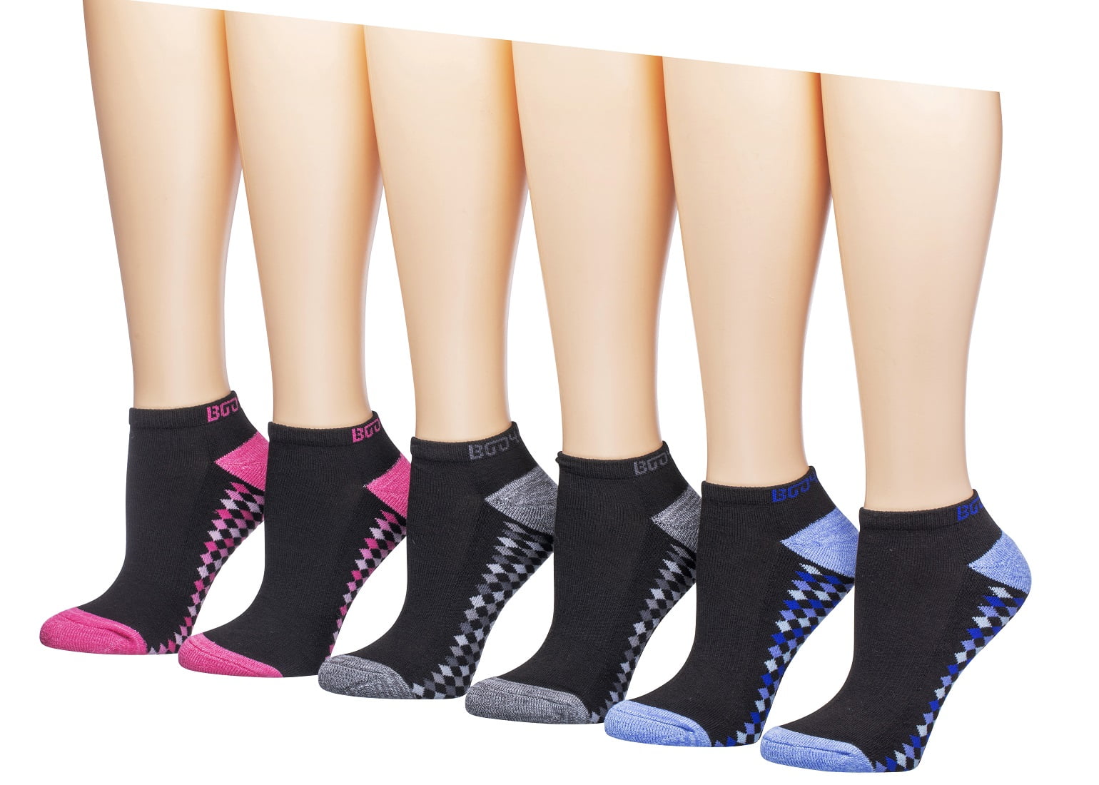 Body Glove Women’s Athletic Low Cut Socks for EVERY Day use. 6 Pairs. Color – Black with Checkered Pink/ Grey/ Blue. Sock Size 9-11, Shoes Size 4-10. Machine Wash and Tumble Dry Low. Arch Support; Reinforced Heel and Toe. Low Cut, Cushion For Comfort.