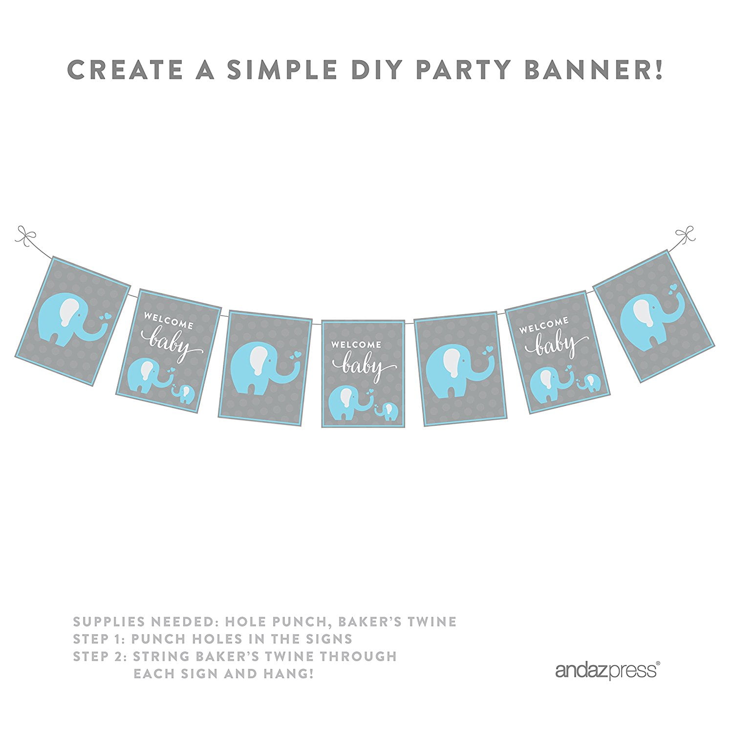 Boy Elephant Baby Shower Party Signs & Banner Decorations, 20-Pack