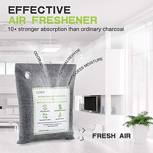 Protect your home from musty odors and unwanted moisture with Clevast Bamboo Charcoal Air Purifying Bags! They are made with 100% natural bamboo charcoals so you can be assured they are safe for the whole family including your furry friends at home. It’s fragrance-free and chemical-free. These air purifying bags effectively remove and fight odors and freshen up every corner of your home. You can also place them on your car, shoes, refrigerator and cabinets or in any furniture or wherever needed.100% NATURAL BAMBOO CHARCOAL: The bamboo charcoal bags are made of 100% natural bamboo charcoal, without any fragrance and chemicals. They are safe for children and pets. Standard size bamboo charcoal particles have a larger contact area with air, the performance of adsorption is better, effectively remove odors and bring fresh air. REUSABLE FOR 2 YEARS: Rejuvenate the charcoal bags by placing them under direct sunlight once a month for about two hours. It releases the void of bamboo charcoal, restores the effectiveness and maintains the service life of the bag for up to 2 years. EFFECTIVELY REMOVES ODORS: Bamboo charcoal absorbs 10x the odor of regular charcoal bags; eliminating musty odors with ease, quickly transforming your home air quality! We recommend placing multiple air purifier bags to specific areas around the house to maximize the air purification effect. MULTIPURPOSE FRESHENER: They are made with durable burlap bag with built-in metal hook design which is very easy to use and carry. You can put it in any corner of the car, shoes, kitchen, bathroom, refrigerator, gym bag and more! EXCELLENT CUSTOMER SERVICE: Customers are at the core of everything we do. If you have any problem about this bamboo charcoal bag, please feel free to contact us, we will arrange the refund or replacement for you!
