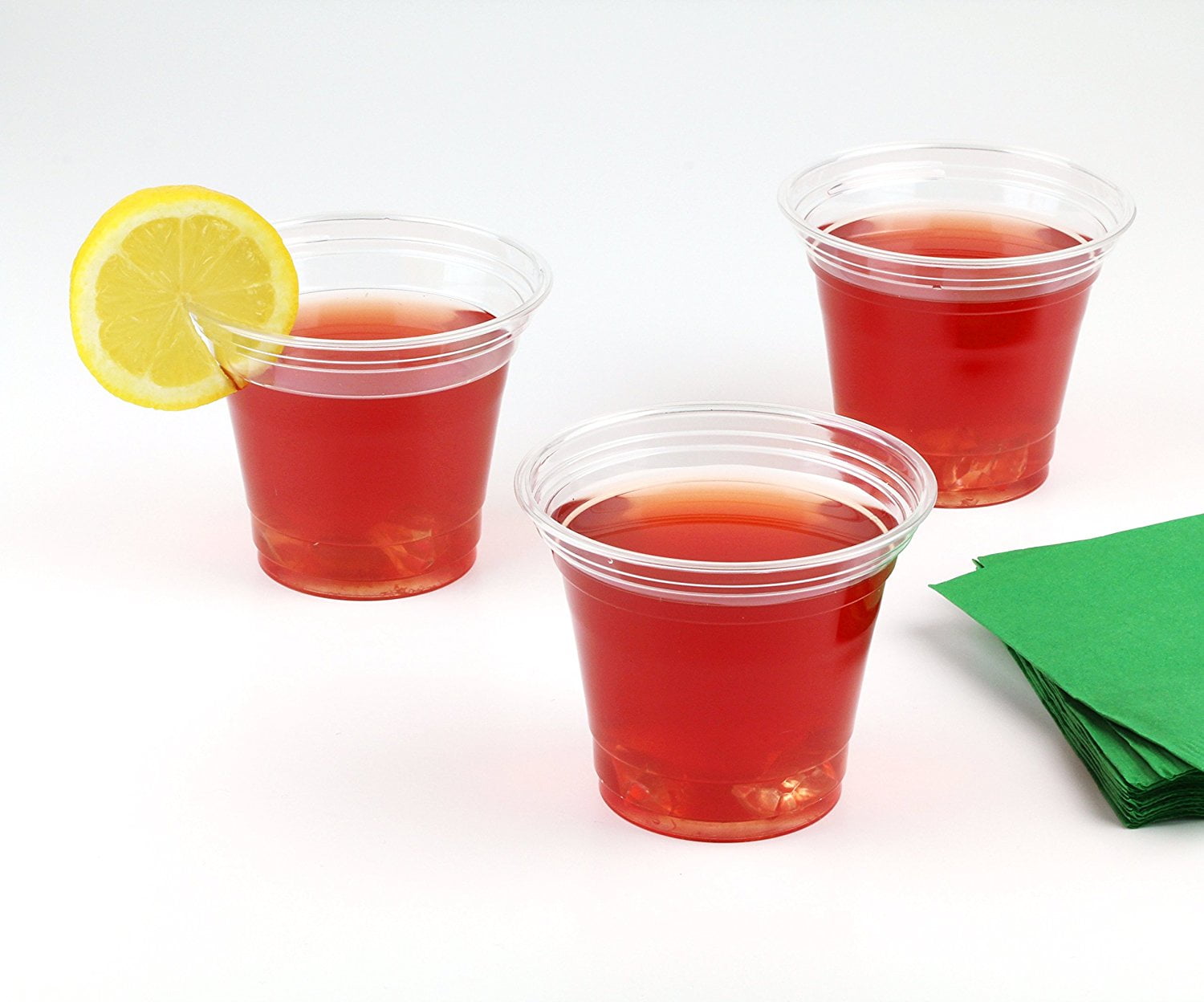 Comfy Package 9 oz. Crystal Clear Plastic Party Cups/Tumblers, 100-PackA practical component to any successful party or event, Comfy Package elegant party cups ensures easy serving and quick cleanup. The pack of 100 crystal clear plastic cups/tumblers means there’s plenty to accommodate a crowd, and each disposable cup holds 9 ounces—a nice size but not overly huge for serving drinks that guests can easily carry around. Serve in style and make cleanup a snap with Comfy Package elegant plastic cups.Made of PET plastic, the strong plastic cups can be tossed in the trash when finished. Enjoy your parties, events and social gatherings without the hassle of having to wash a slew of glasses afterward.Oh, and did we tell you that these cups are stackable? The cups come stacked together for easy carrying and compact storage. Place a cup at every place setting or set a tower of cups upside down on the table to allow guests to help themselves. Easily pull a cup off the top of the stack, one at a time, as needed. The stacked cups provide space-saving convenience and make a welcome addition to any bar area or beverage table.
