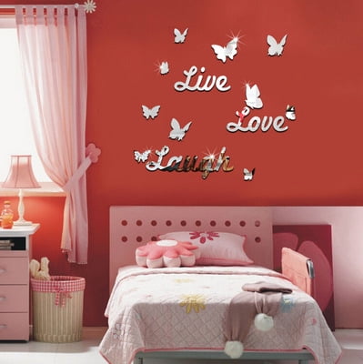 Costyle Live Love Laugh Character and Butterfly Mirror Wall Stickers Home Decor