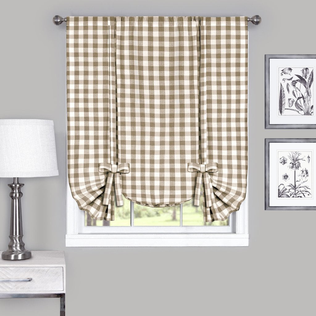 Country Chic Plaid Gingham Tie Up Shade Window Curtain Treatment – Taupe