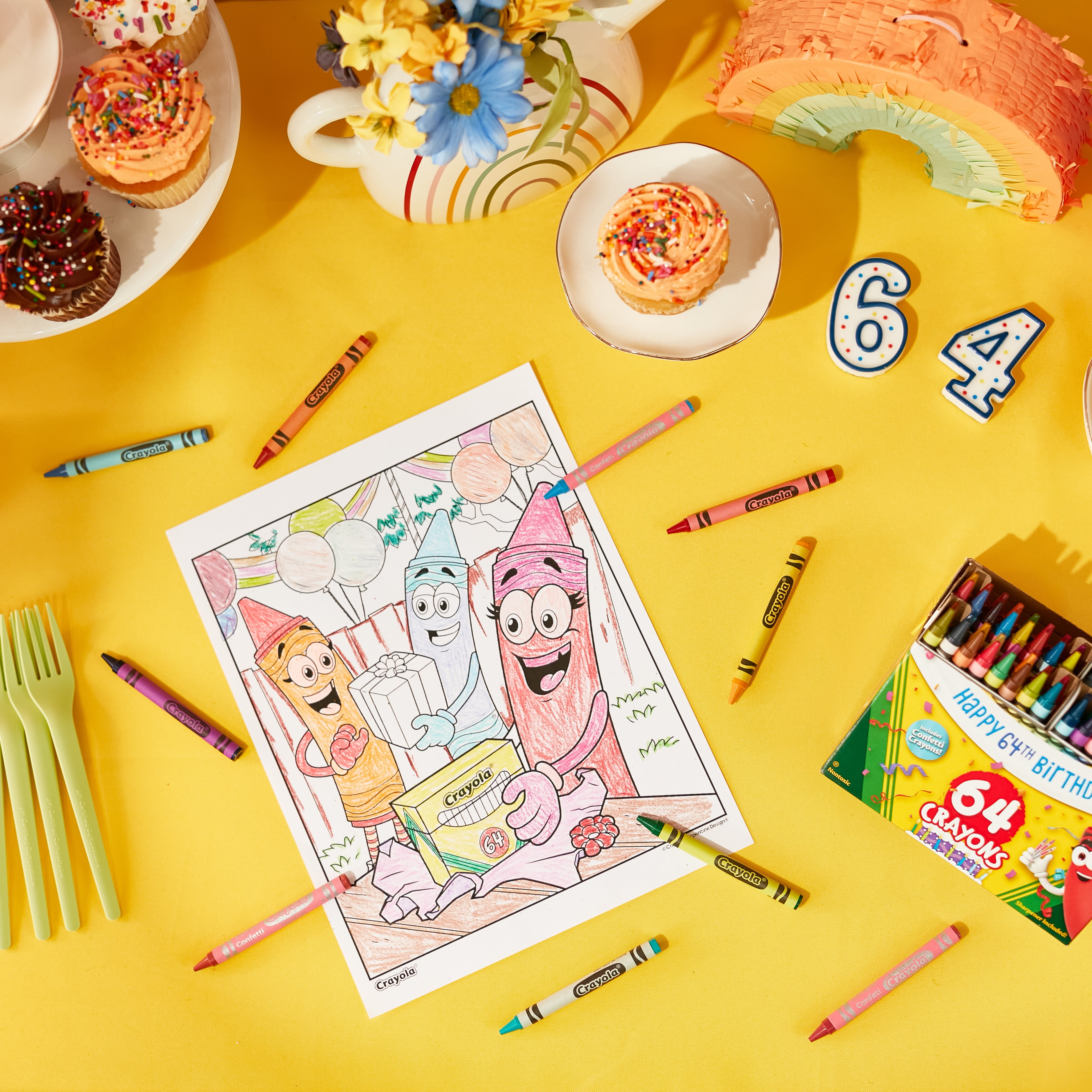 - 64 CRAYOLA CRAYONS: Features 64 Crayola Crayons in fun, assorted colors in a convenient flip-top crayon box!