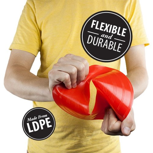 These plastic disc cones make pre-practice setup quick and easy. They are a must-have for schools, sports teams, at-home games, picnics, barbeques and more.