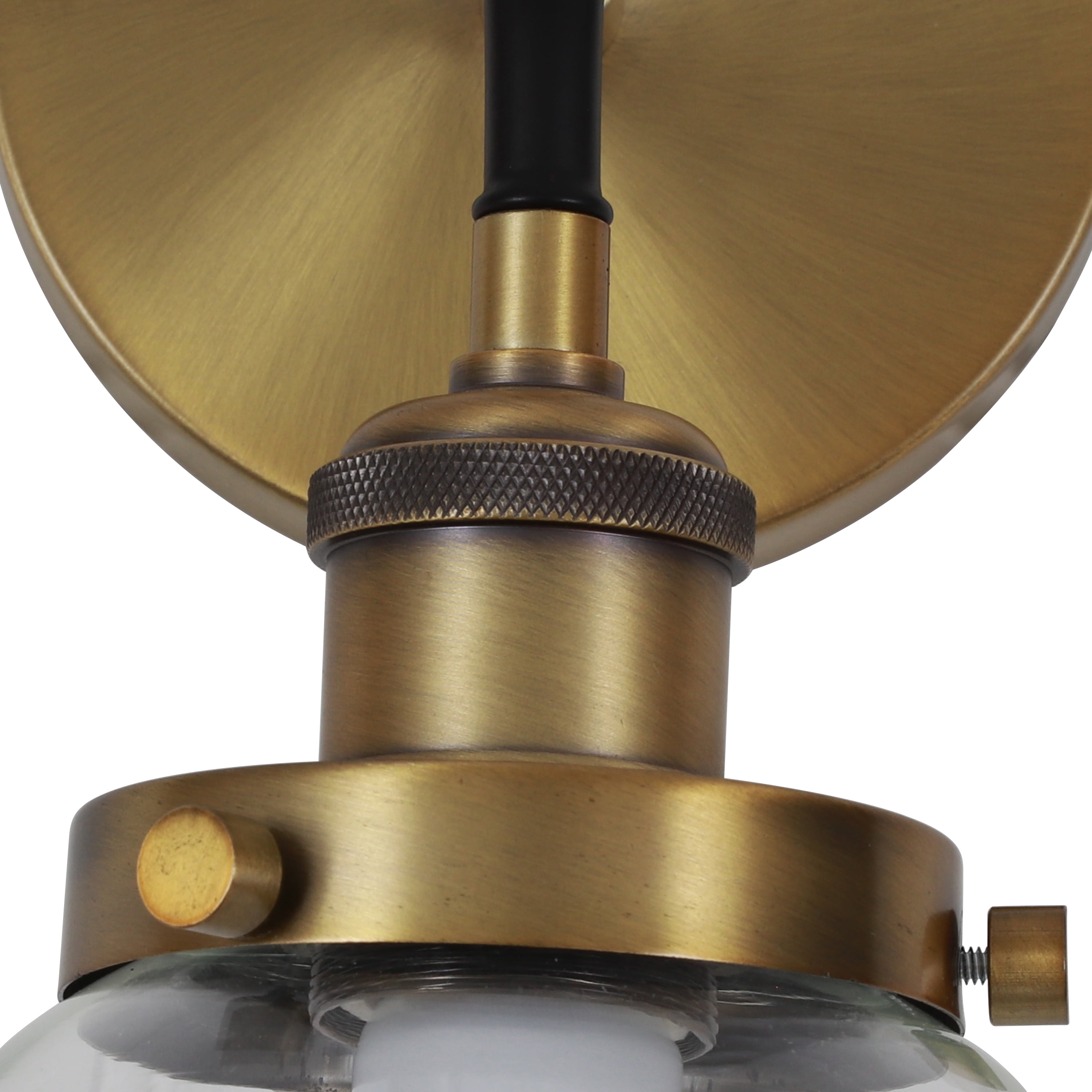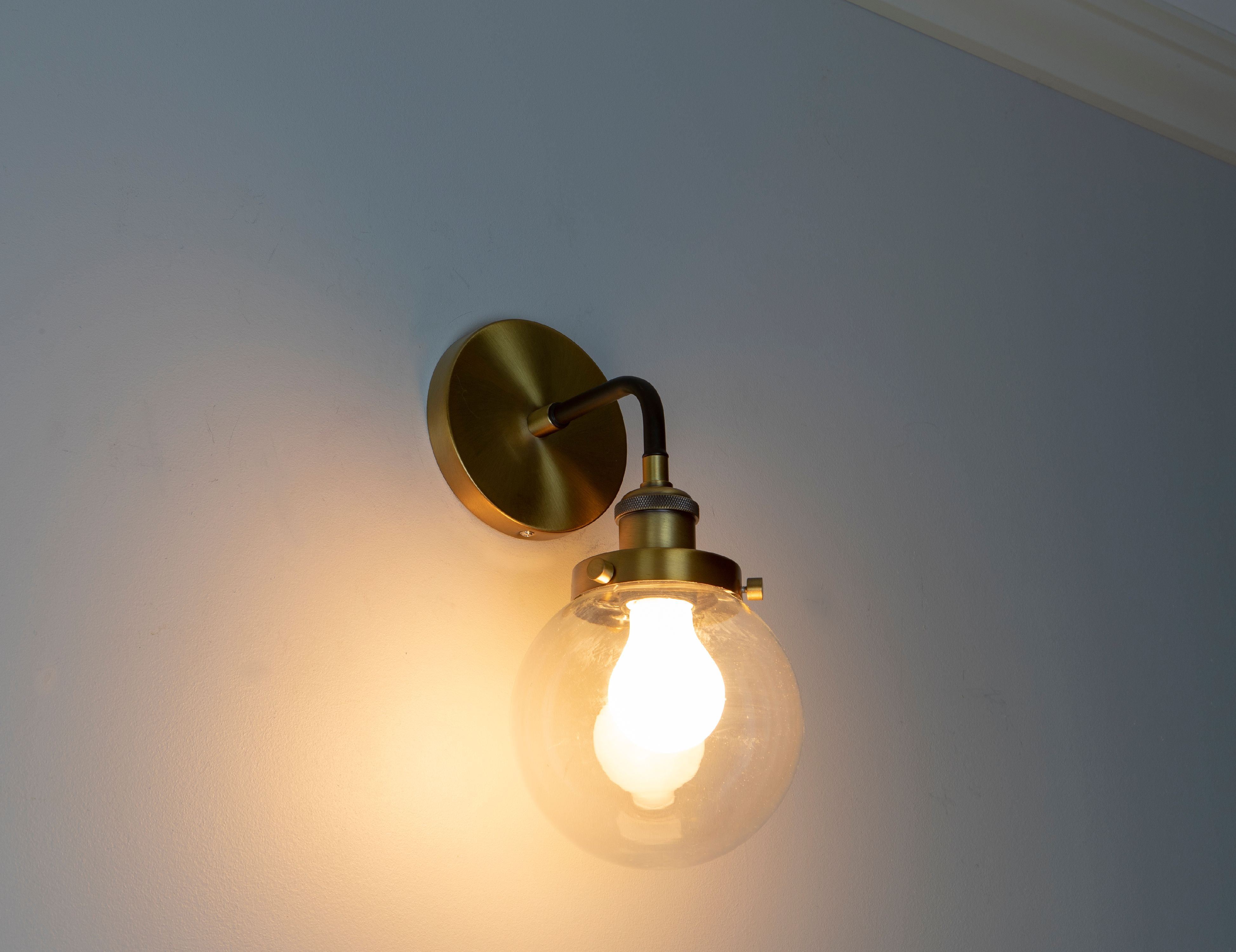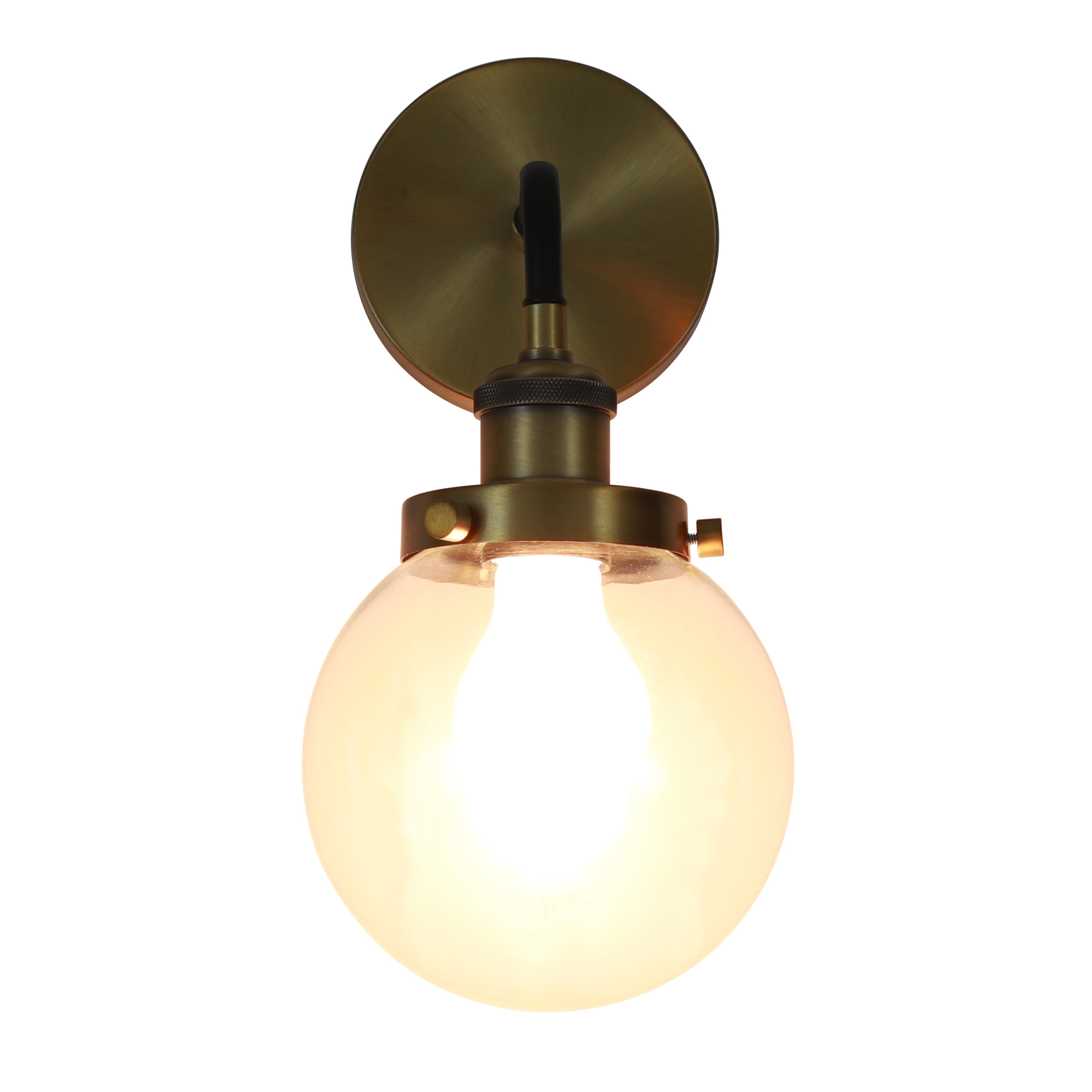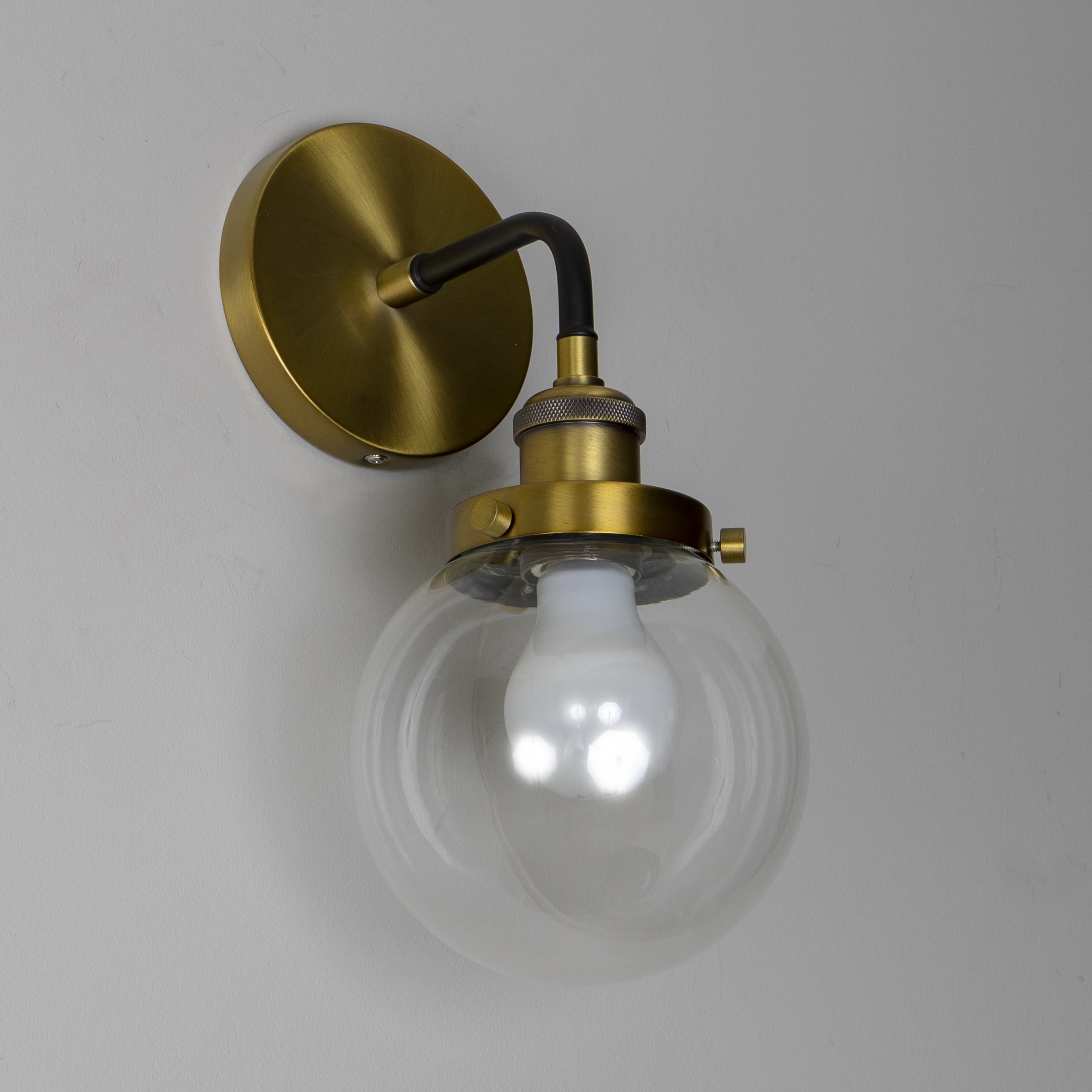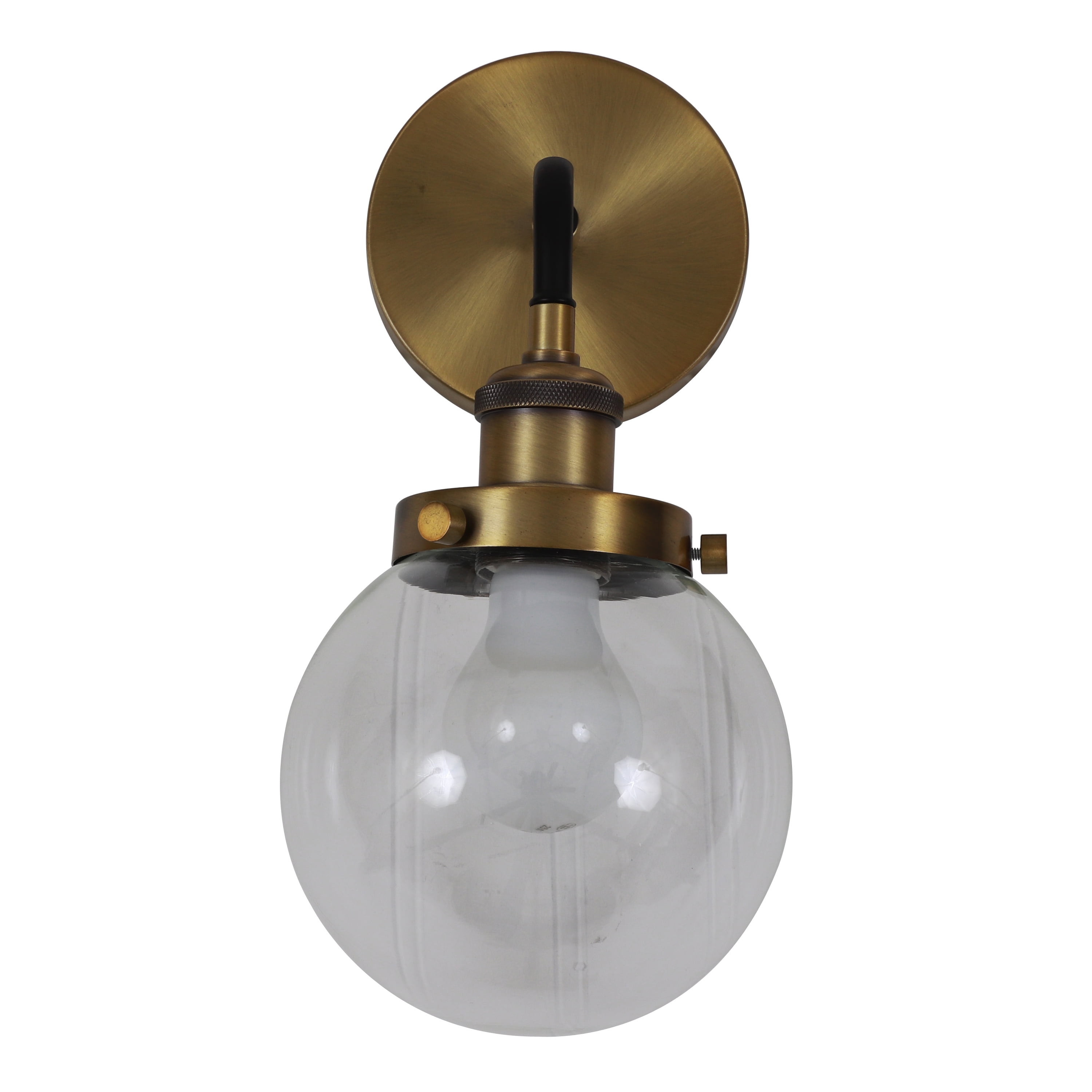 Modern meets vintage to bring a stylish flare and brightness to your living space with the eclectic Samuel Suspended Orb Wall Sconce. Suspended from a round modern wall bracket the mixed material light fixture features a large clear glass globe shade for a mid-century modern feel and compliments the finished metal. The exposed bulb adds character and better illuminates your bathroom, hall or bedside. Requires one (1) watt bulb, not included. Measures 10x15x8"