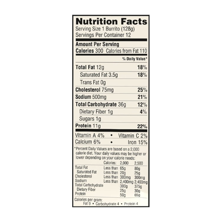 - 12 count value pack individually wrapped for ease and convenience, each burrito loaded with 11 grams of protein and 0 grams of trans fat per serving to start your day out right