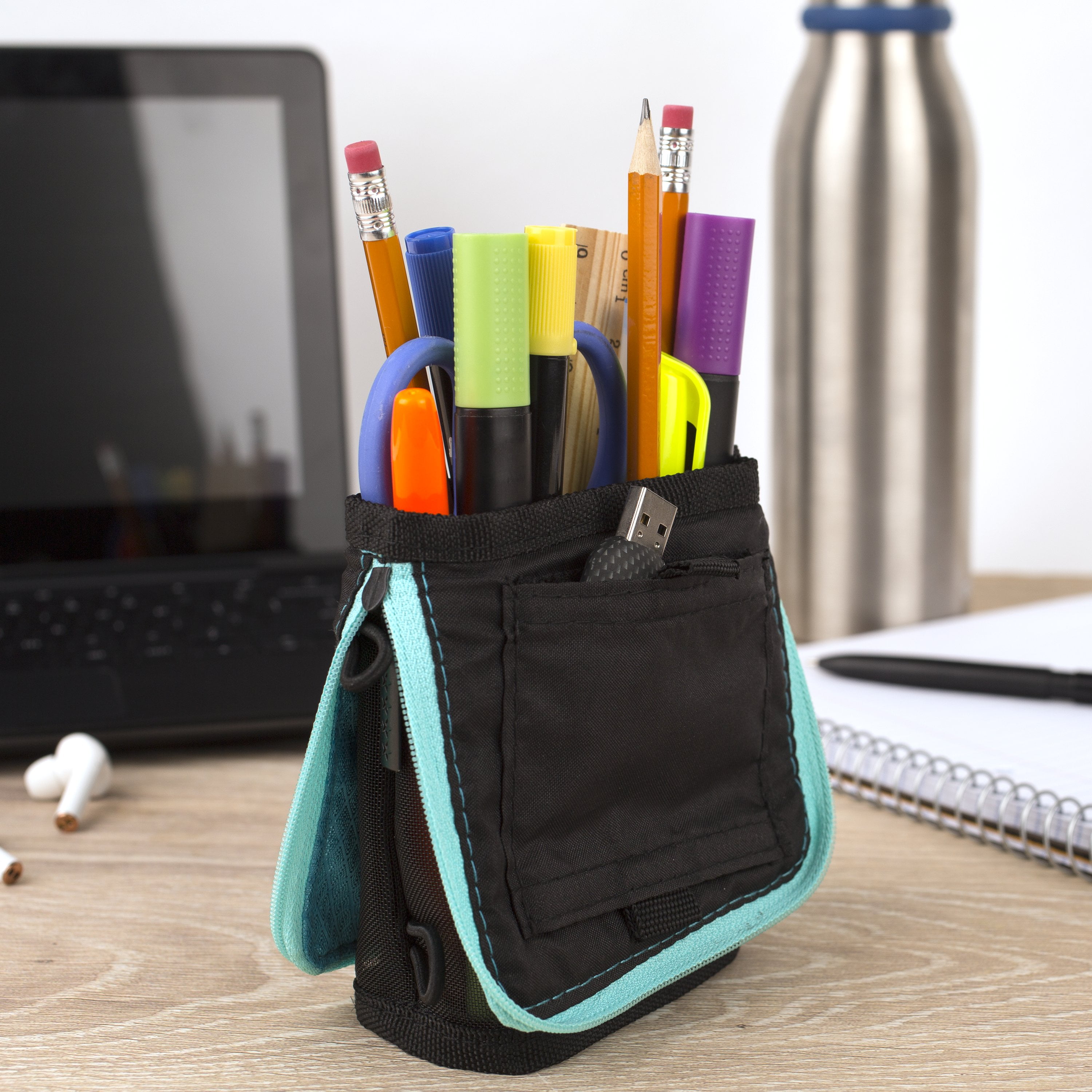 - Unique, self-standing design allows you to quickly see and access your supplies while pouch sits on your desk
