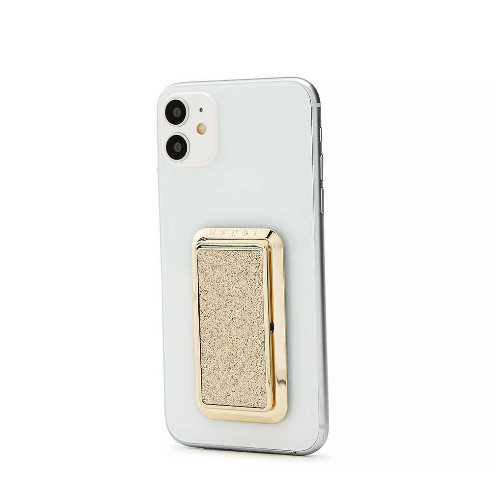 HANDLstick Universal Phone Grip and Stand, Gold GlitterExperience the freedom of the HANDLstick phone grip and stand. Pair with any device for a sleek, patented elastic brace system.