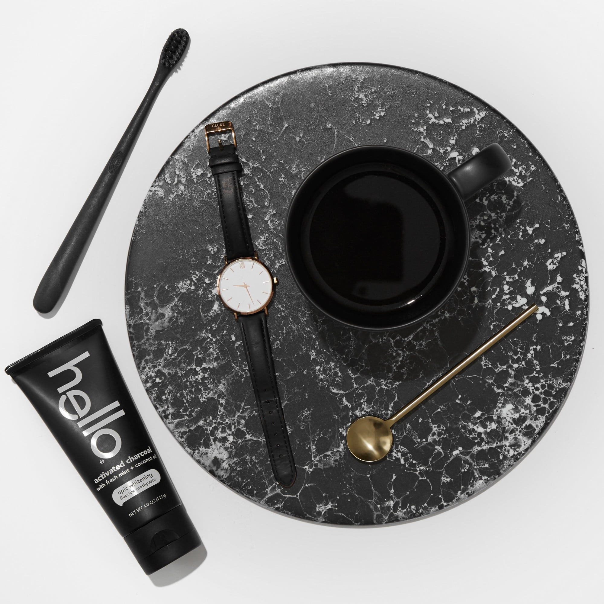 Activated charcoal (made from sustainable bamboo) is nature’s way to epically whiten teeth and freshen your breath like nobody’s business. here at hello, we believe in a brusher’s right to choose, so this charcoal paste contains fluoride, which helps to prevent cavities and strengthen enamel.