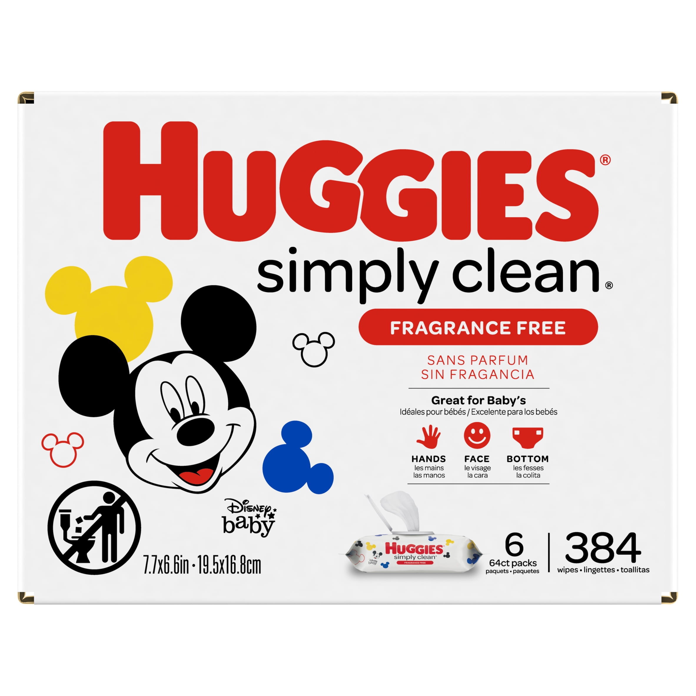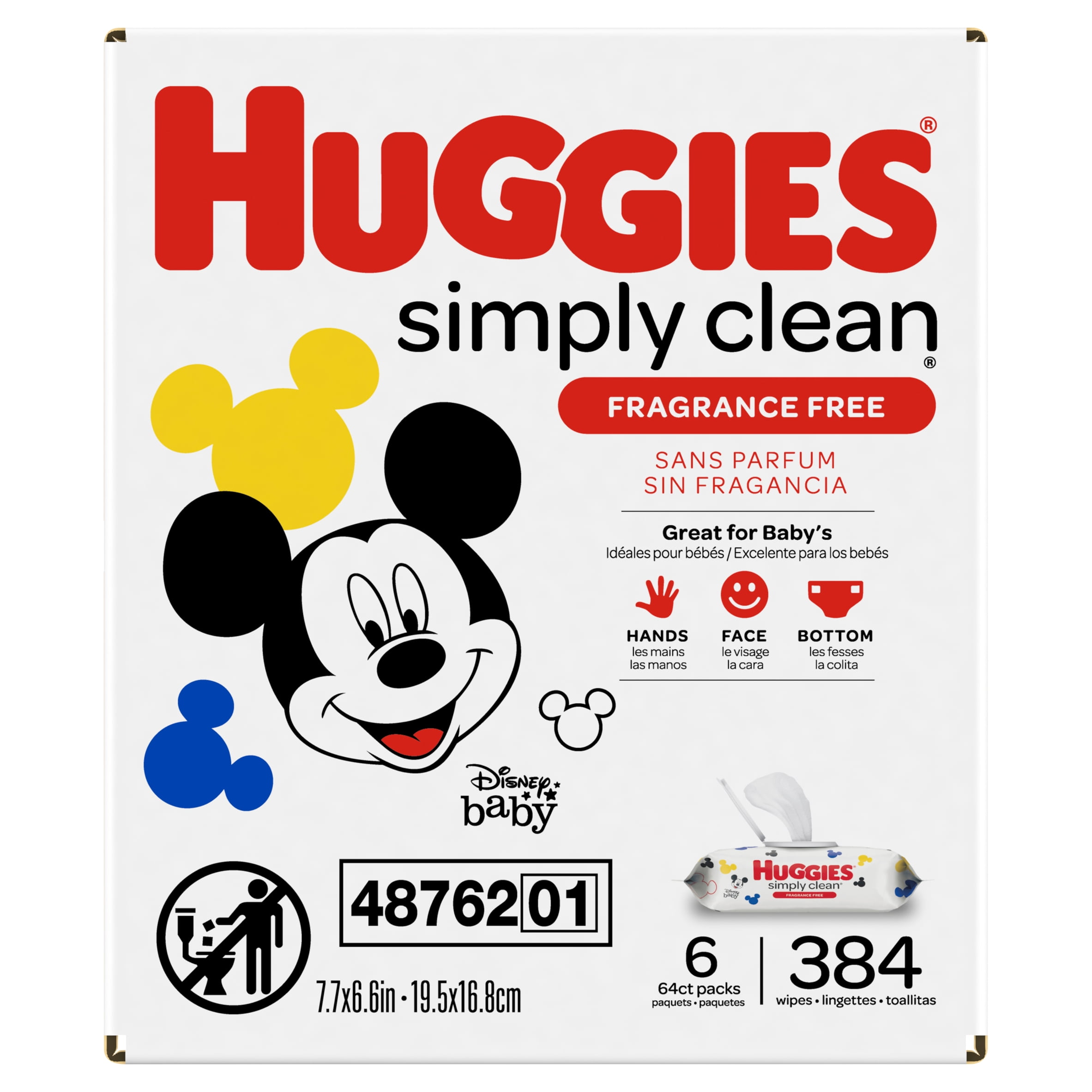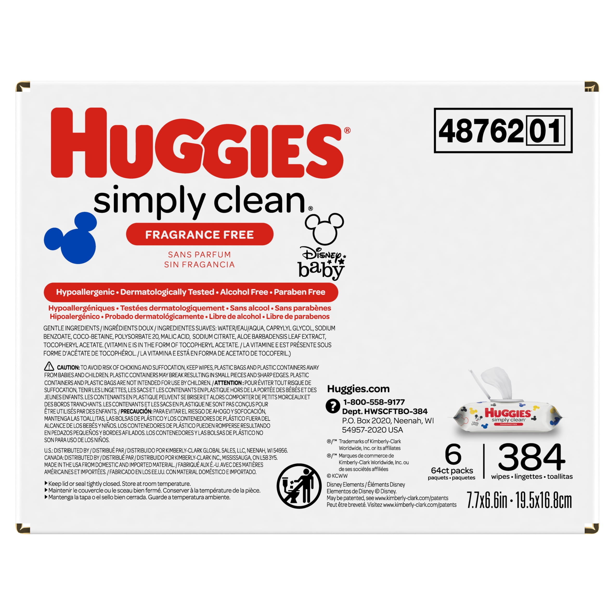 - 6 flip-top packs of 64 unscented baby wipes (384 wipes total)