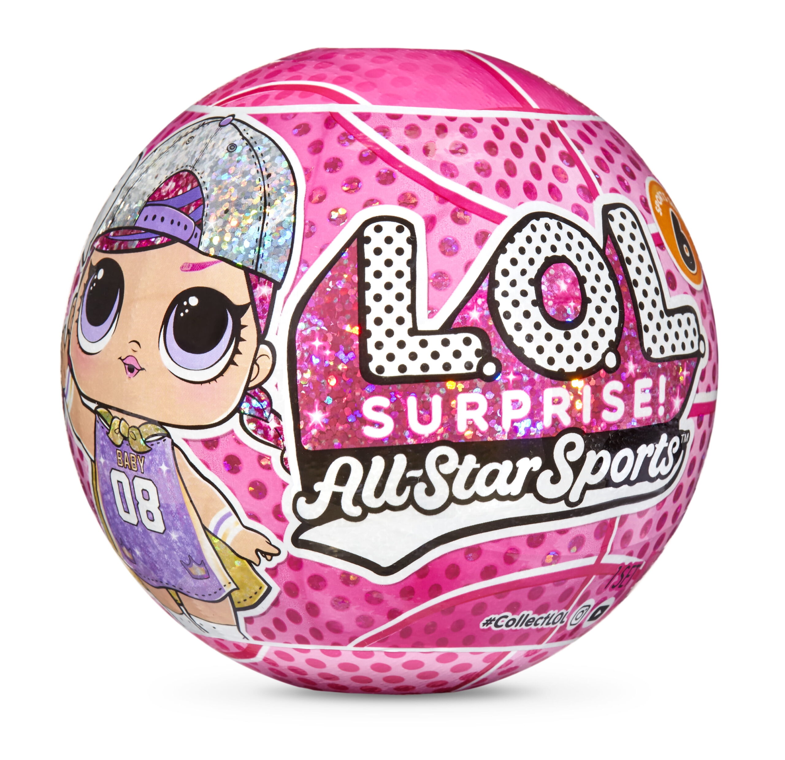 Get ready for tip-off and unbox 8 surprises with LOL Surprise! All-Star Basketball B.B.s. These fan-favorite characters got a sparkly makeover and joined a fierce basketball team. Collect both the Courtside Cuties and the Diamond Dribblers! Will you find an M.V.P. B.B. or a cutie who loves to slam dunk? Each collectible doll includes an all-new glitter uniform, basketball-themed accessories, and a fun water surprise. Every basketballer comes with a collectible trading card that doubles as a backdrop. Create a cute photo op by placing the trading card in the slot on top of the ball. Collect all 12 dazzling basketball characters on both teams. Each ball includes a LOL Surprise! All-Star Sports doll, an outfit, shoes, multiple unique accessories, a bottle, a trading card, and a secret message. LOL Surprise collectible dolls with stylish hair, outfits and many detailed accessory pieces make a perfect toy for kids, including 4 years old and up girls and boys for imaginative pretend play! As birthday gifts or gift for any special occasion, dolls provide hours of social play with siblings and friends! Great Gift for Children Ages 4 5 6+COLLECT all 12 dazzling players to complete both teams: the Courtside Cuties and the Diamond Dribblers!COURTSIDE READY: Each All-Star comes with an all-new glitter uniform and basketball-themed accessories such as a basketball hoop, mascot, gym bags, and more! UNBOX 8 SURPRISES including a collectible doll, a sparkly outfit, shoes, basketball-themed accessories, a bottle, a trading card, and a secret message.SECRET WATER SURPRISE: These L.O.L. Surprise! All-Star dolls each come with a fun water surprise. Feed or bathe your doll and discover their unique water feature.
