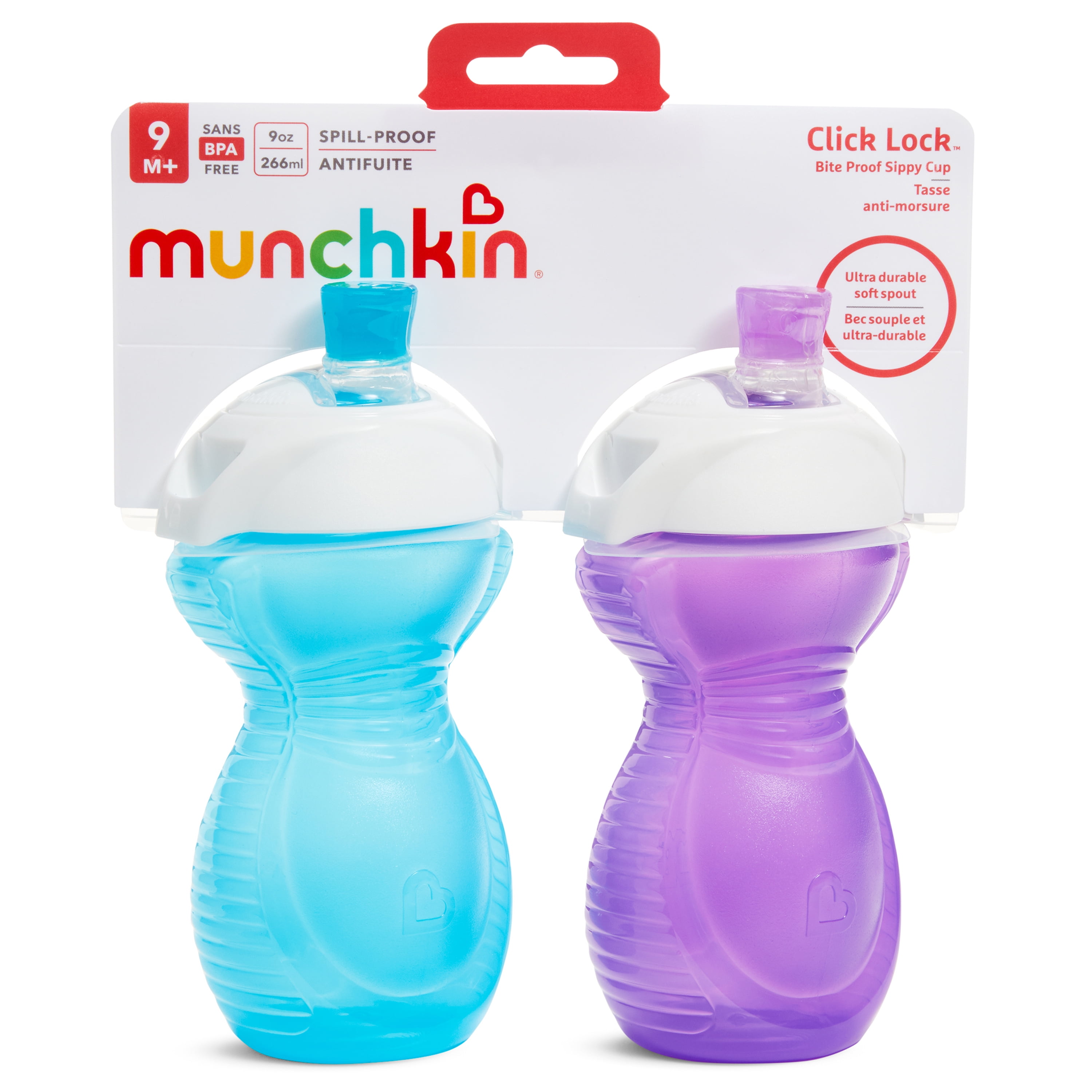 Munchkin Click-Lock Bite Proof Soft Spout Sippy Cup, 9oz, 2 Pack, Color May Vary