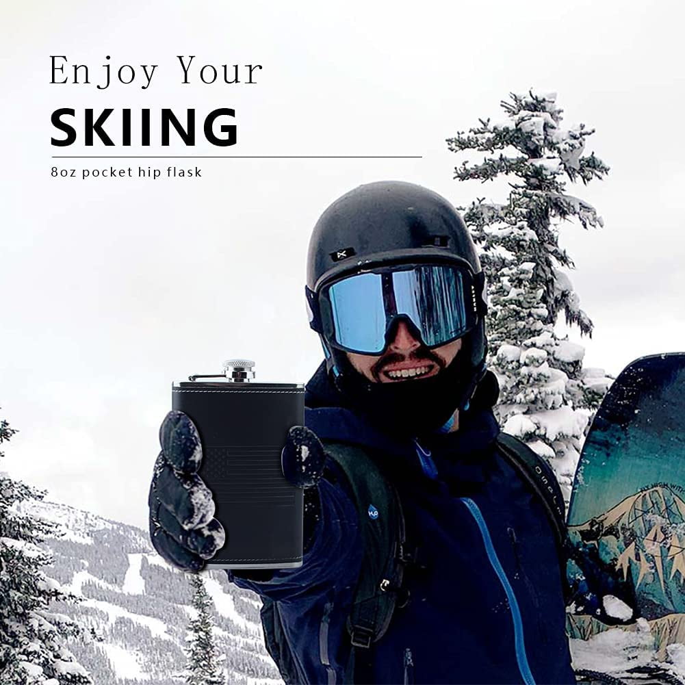 - 【GIFT BOX SET】Black stylish hip flasks set gift box is more in line with men’s temperament. Product List: 1 x 8 oz hip flask, 1 x Large Funnel, 2 x Cup. Satisfy your needs to carry wine, easily pack wine, and drink anytime, anywhere.